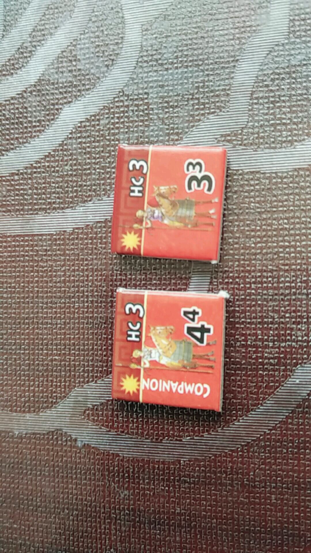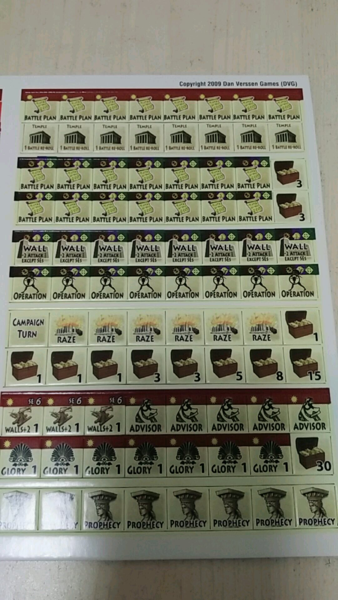 一版176个棋子,总数不多类型多,有马其顿、波斯、印度、南希腊部队棋子,战斗计划棋子,行动棋子,洞察力棋子,谋士棋子,预言棋子等等。