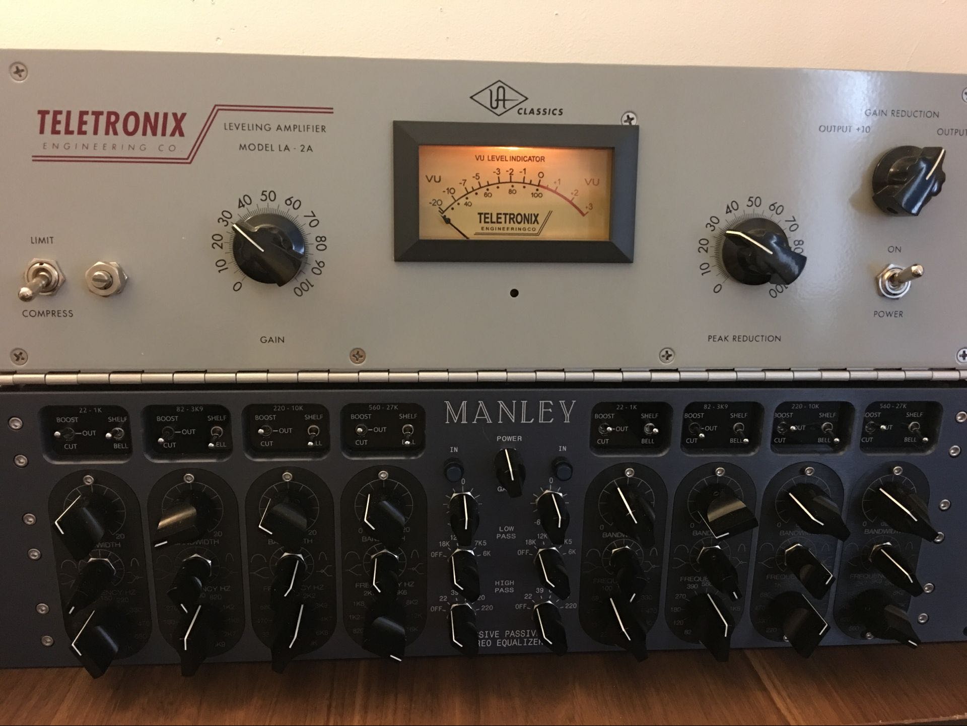还有很多人,低频总是潜不下去,却陷入砸琴砸音箱的怪圈。其实低频属于EQ问题,首先要解决的就是EQ模块。最经典的处理方法是pultec (上图无,买不起),它最出名的就是把声音巨大化,它的低频调控集中在30, 60, 100等超低音,同时有独特的集中功能,在加重低音的同时却不会破坏混音的融合度。另外就是Neve, SSL等通道EQ,或许你砸了几万,不如SSL通道