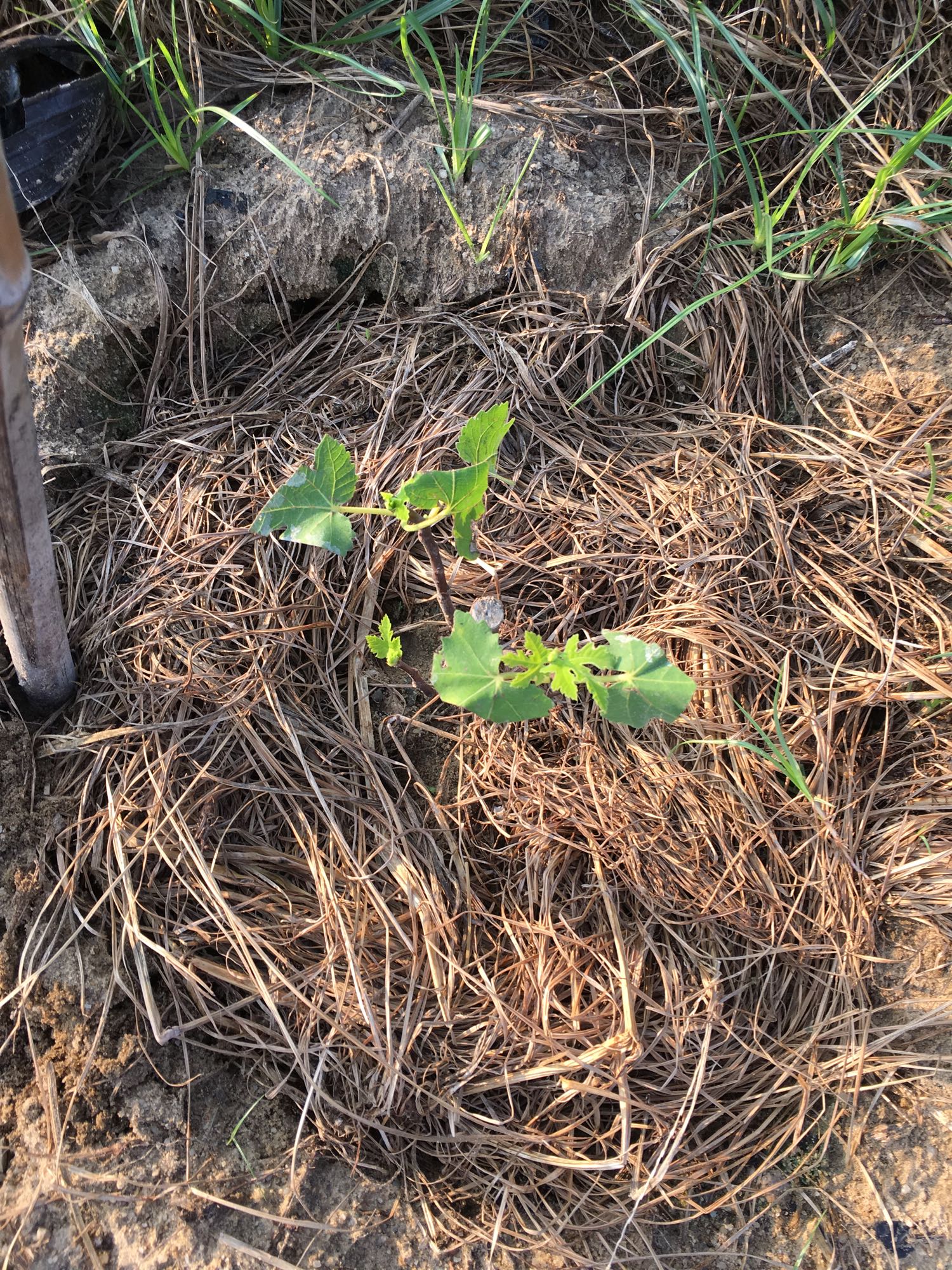在大连哥入手了两棵,盆栽是紫色波尔多,地栽三个侧枝的是大芭,大连哥的品种应该没问题吧?已经种下半个月了,长了两三片叶子,请问大神,可以施肥了吗?