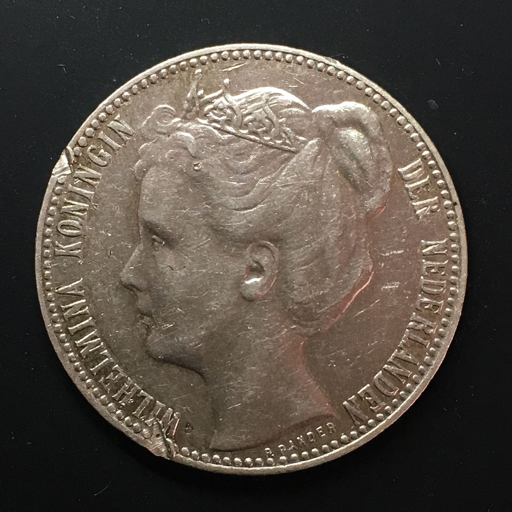 荷兰1901年1盾银币,少见年份,币胚缺陷,180起