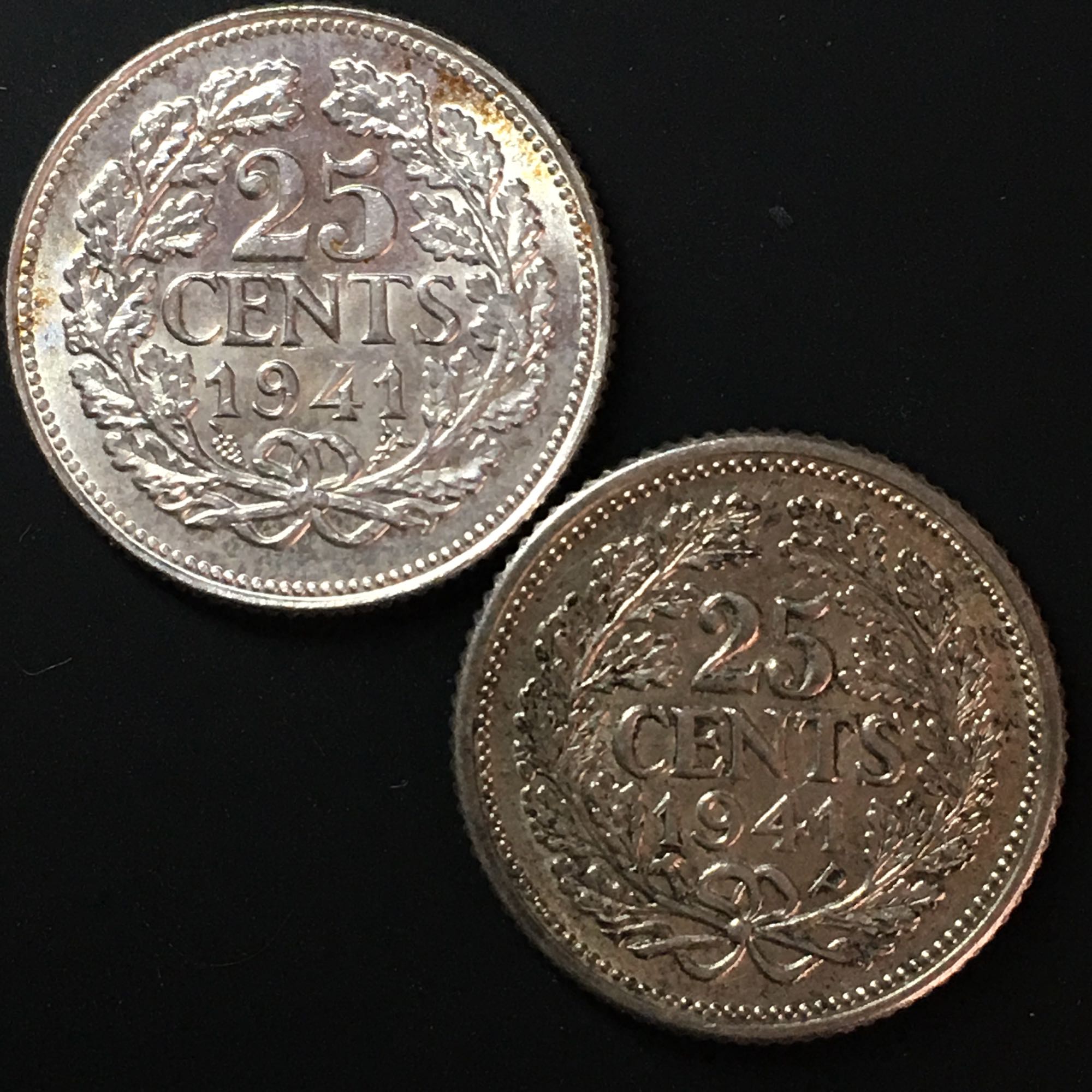 荷兰1941年25分银币一对不同版,未流通,40起