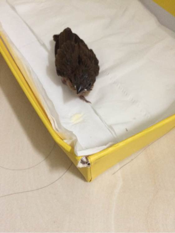 今天在外面捡到一只小鸟,腿不知道是摔坏了还是没长好,已经快会飞的样子,会扑棱。希望能养活,就算在外面也晒死了,多活一天都好,喂它吃鸡蛋也肯张嘴吃小米。