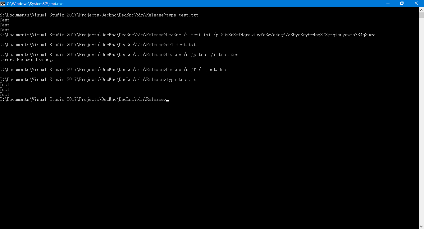 DecEnc /i [/p password] [/d] [/f] [/s signature] [/h header] [/inf]