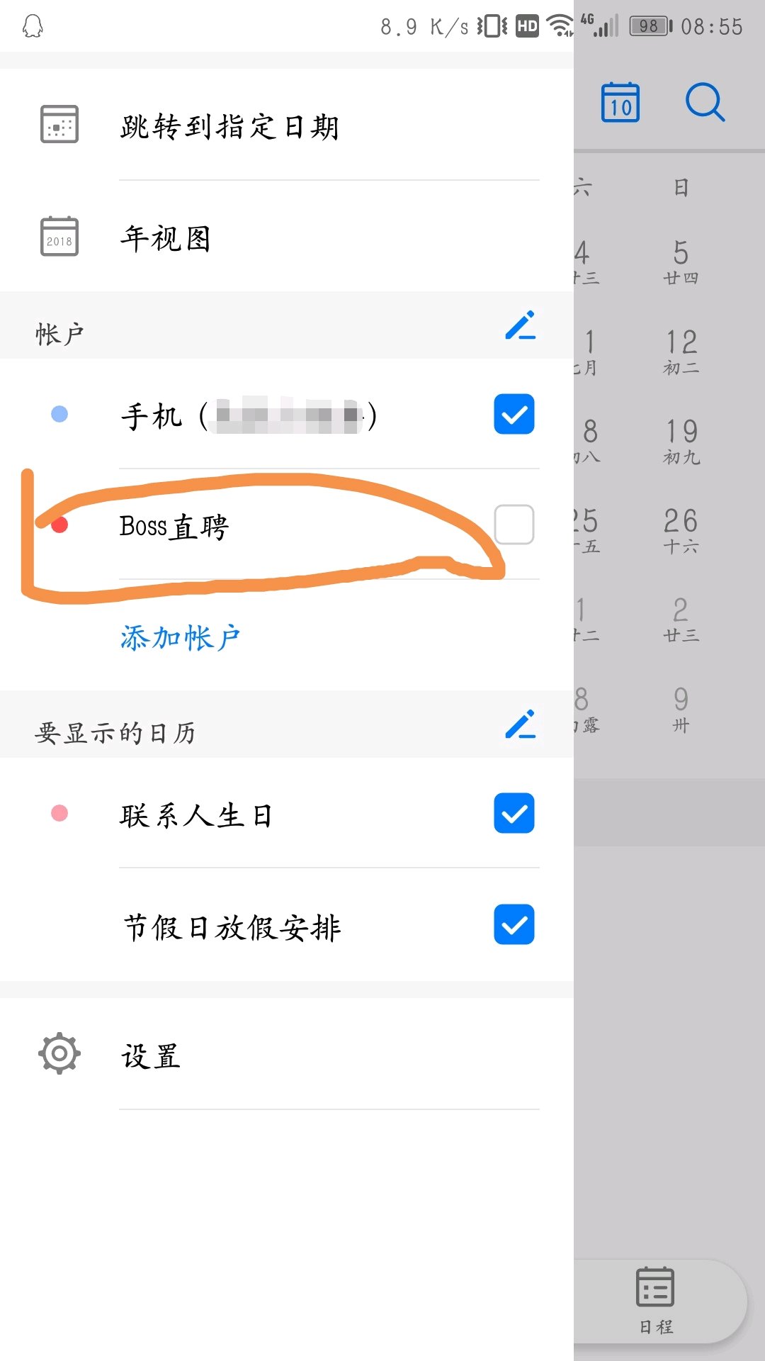 [求助]怎么删掉日历里面的第三方账户,P10手机。