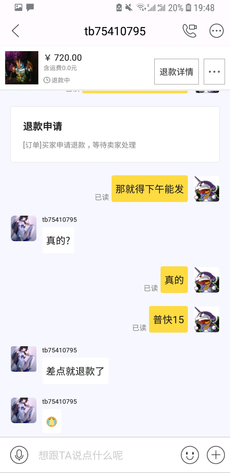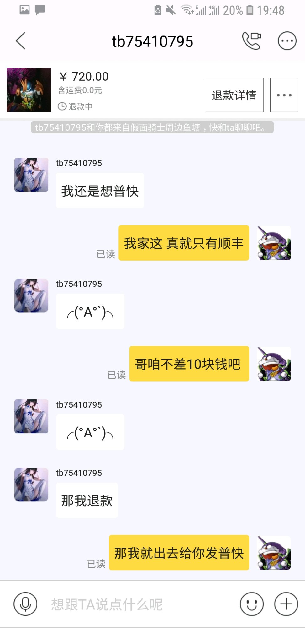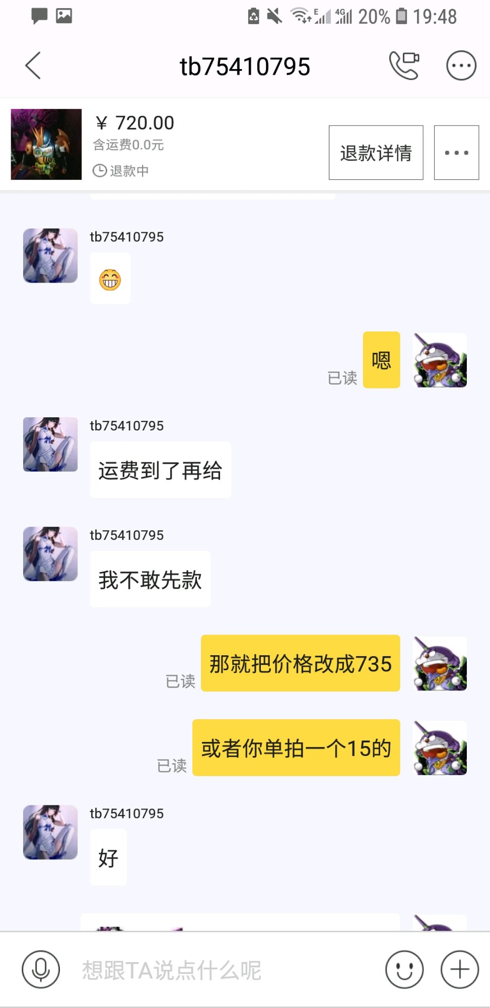 我真暴脾气,你卖我东西,我骗你邮费?有没有搞错,没说不买,直接拉黑,退款不正场吗?比我还暴躁,6呀