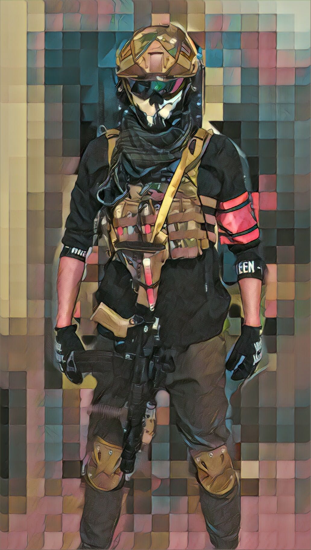 下场:牛仔裤,解放鞋,农民迷彩上衣,鸭舌帽,腰封装上该装的,完了