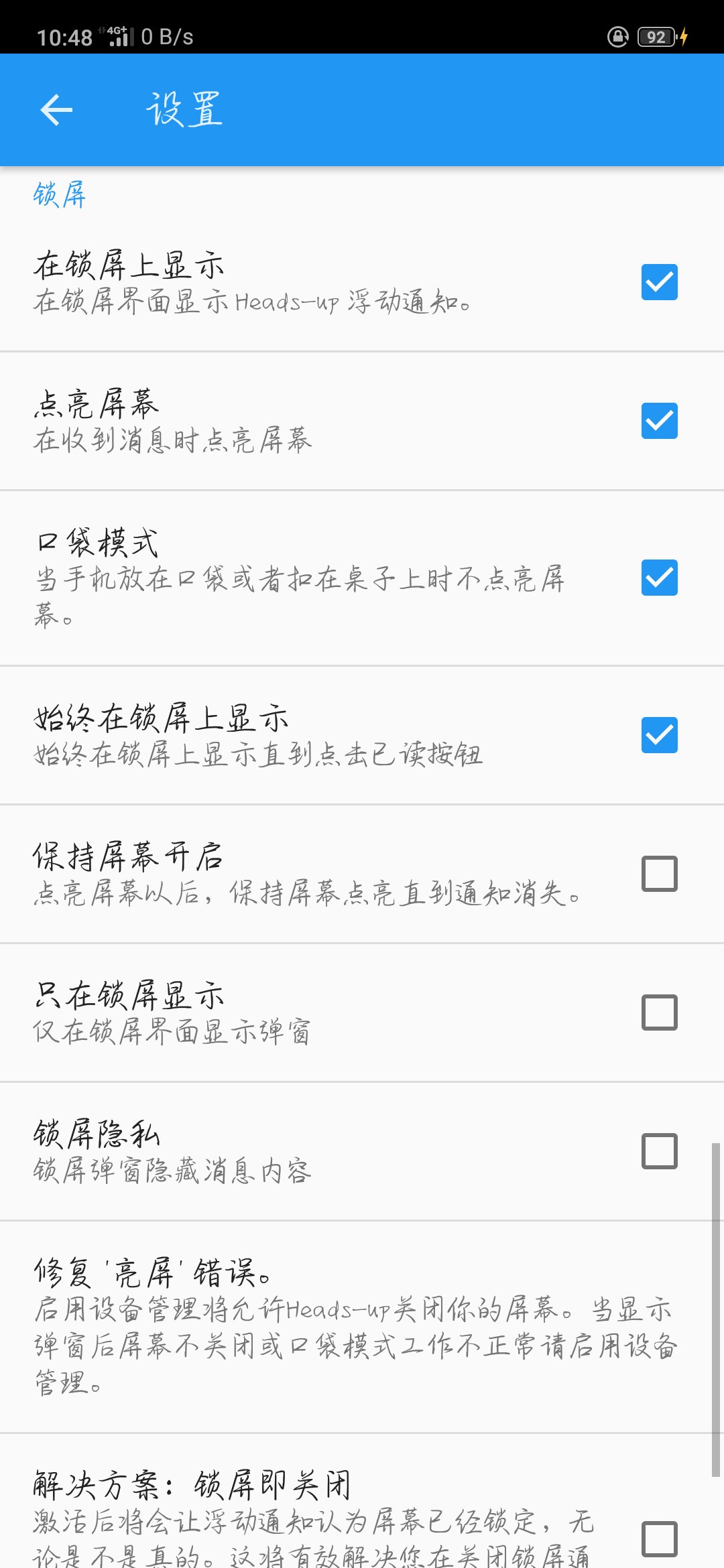 自从买了find x,一直**于息屏状态下来消息不自动亮屏,锁屏界面无消息提示,所以尝试了好多方法,终于找到一款完美的app解决这个问题,app名字叫heads-up浮动通知,可以来消息自动亮屏并且显示消息内容,大家可以去百度手机助手上面下载。不过这里要提示两点:一是如果更换了主题,在应用主题时候一定要保留锁屏杂志,不然来消息会亮屏,但是无法显示消息内容,二是没有跑马灯效果。大家可以去下载试试看哦,如果觉得好用记得来此贴回复一下![[哈哈]](/static/emoticons/u54c8u54c8.png)