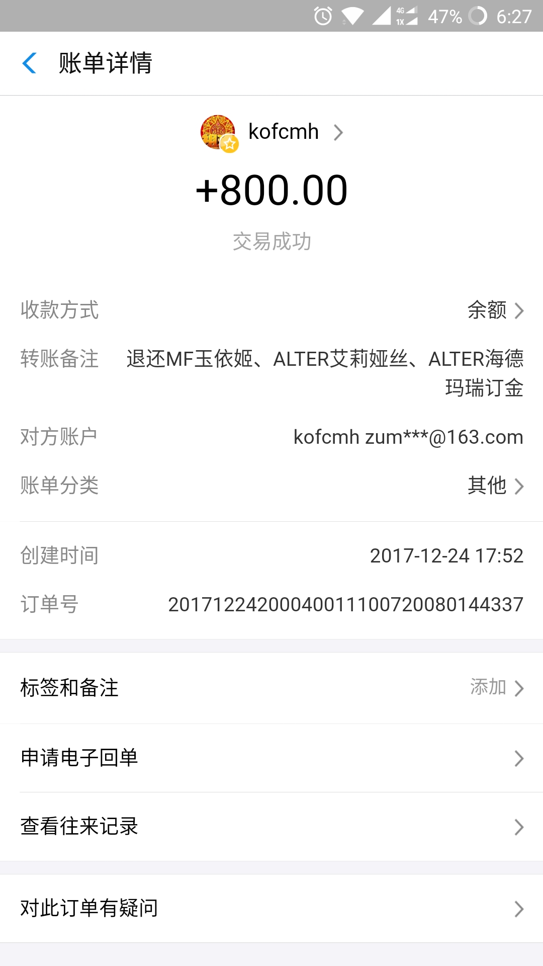 我去年年末整理订单发现当年经常买的祖玛欠了我800定金的货没给我补款,3年前的订单