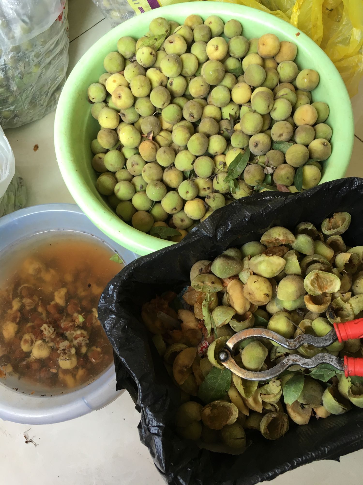 立秋了龙纹桃核采摘剥皮清洗中