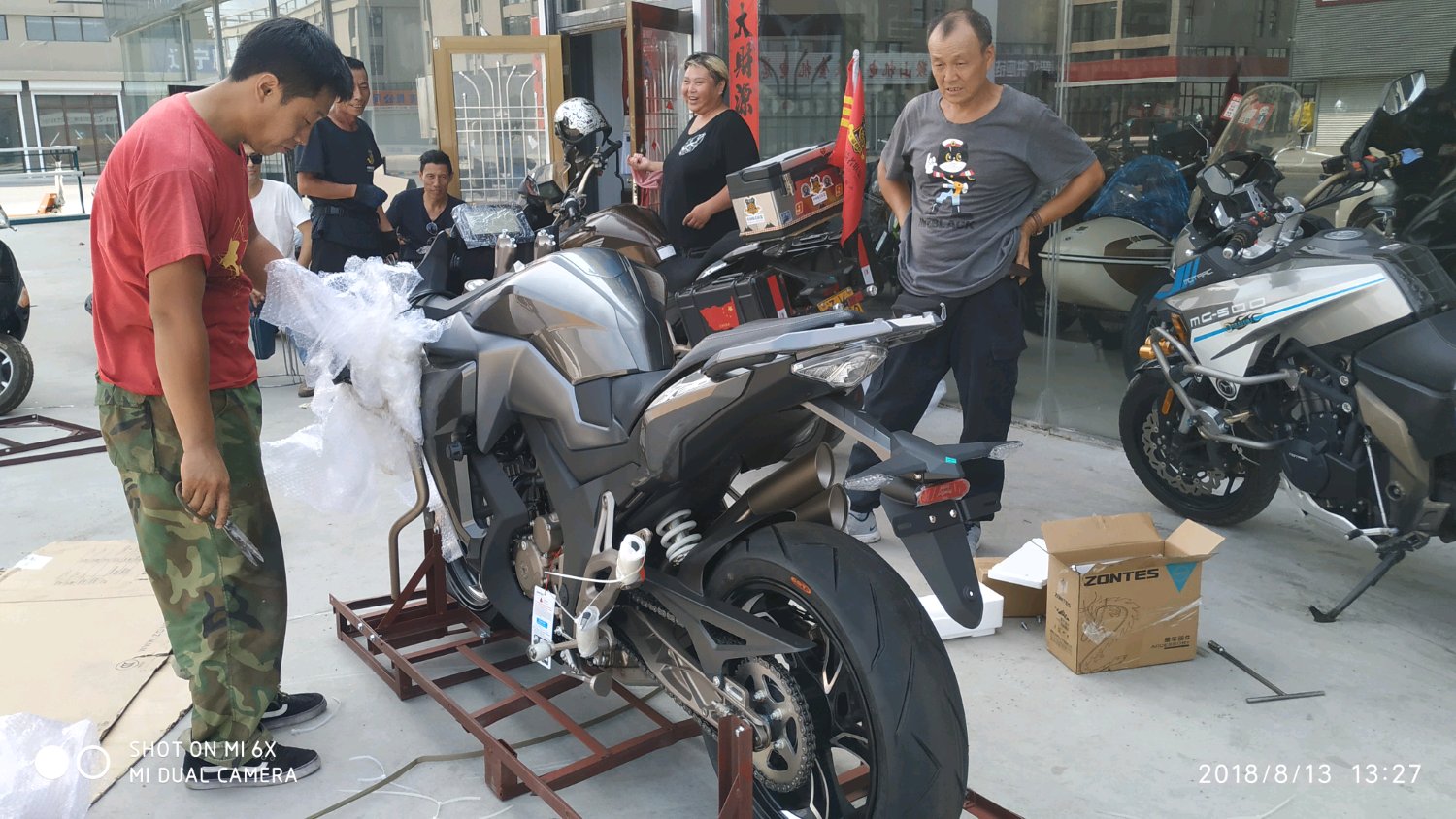 驾驶证还没有到手,临牌也没有办,说是提车 其实也就是开箱组装,发动试车,在院内转一圈,然后车继续放在车店。好了,上图……