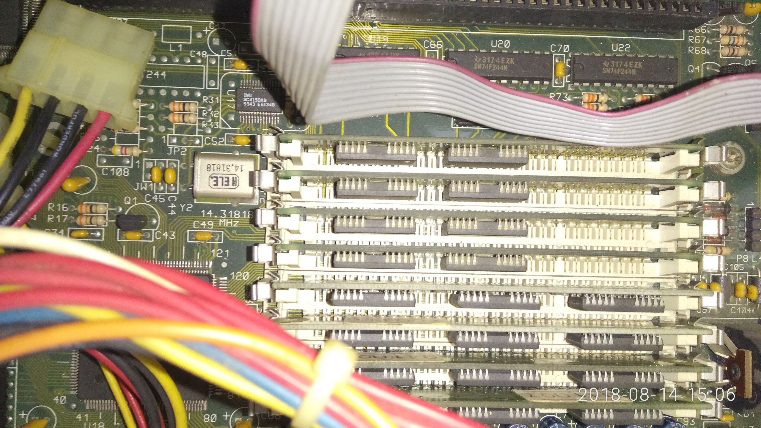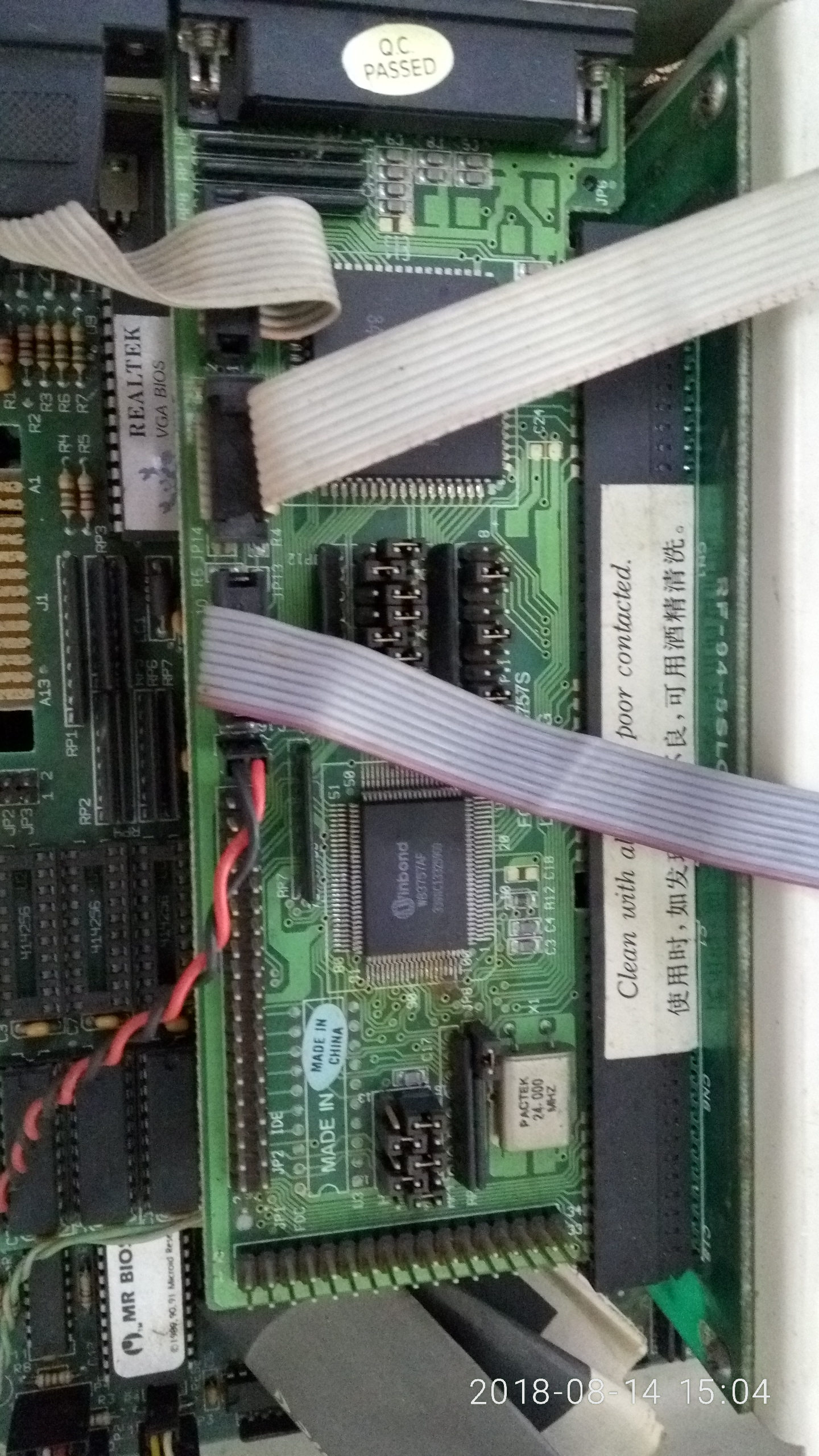 背面照。AT电源,老圆口键盘,显卡接口。至于什么声卡、网卡还没普及,USB还是设想。