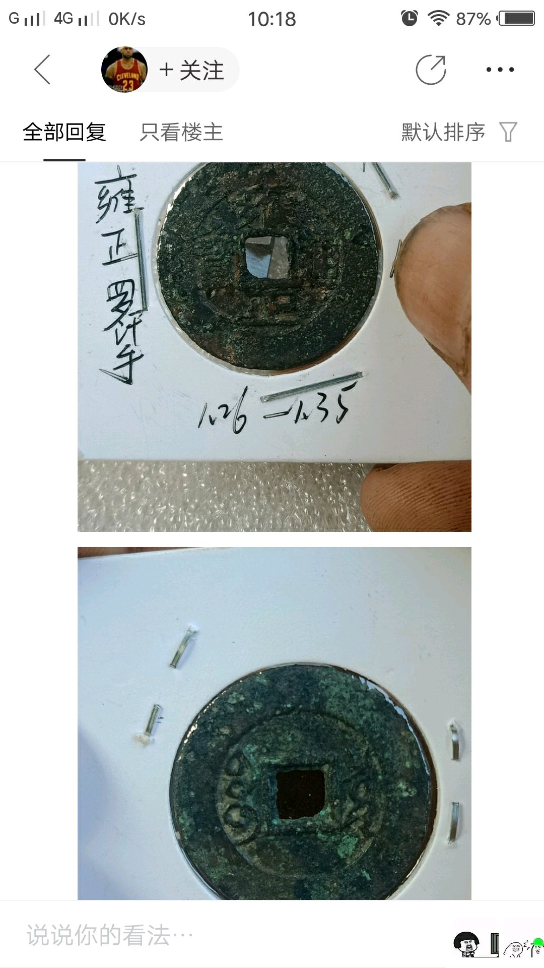 友,请看我镇楼规则第四条。别人在你没谈成之前原价确认的,我也只能给人家。再说啦,给你降到一百一你不要,微信一直谈一百给你,我看你诚心要,又都是吧友,我想着给你得啦,可是在我们聊天的时候别人确认我能怎样呀??为了保持和谐,我还专门翻册子给你拍十枚雍正让你挑,你说我这样做不够仁至义吗