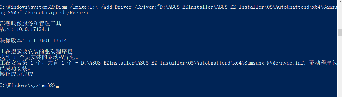 Dism /Image:I:\ /Add-Driver/Driver:"E:\ASUS EZ Installer\OS\AutoUnattend\x64\Samsung_NVMe" /ForceUnsigned 是这样么