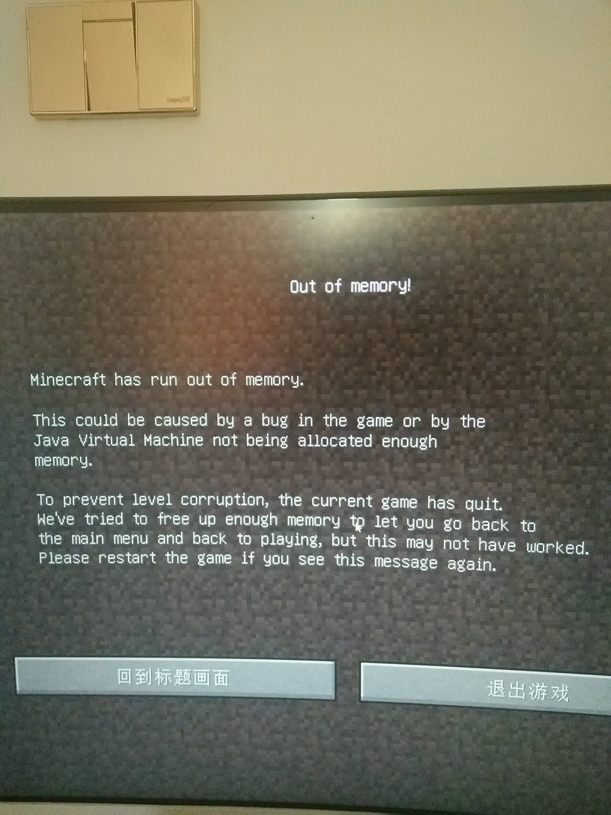 这个我曾经查过,翻译是minecraft没有运行内存了?记不太清了,好像后面我是换了个JAVA版本就可以了