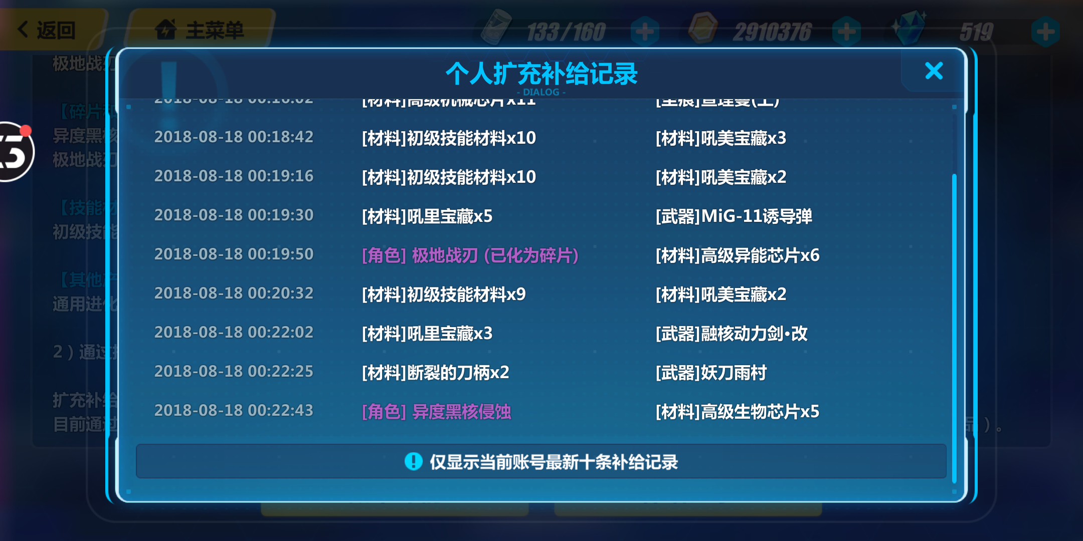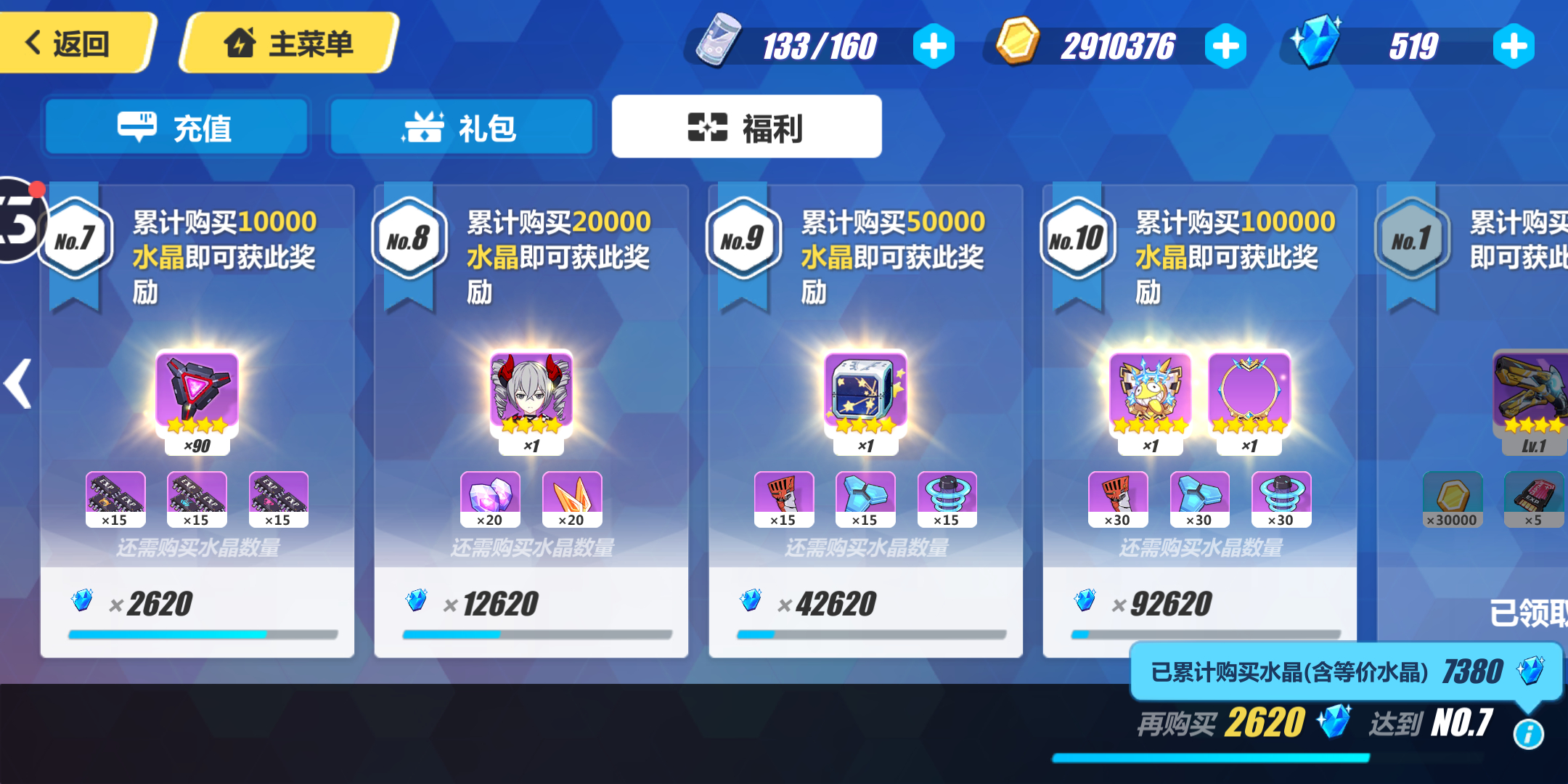 lz是1.2版本玩家。到现在,角色如下图。氪的水晶就是几次30,十几次月卡