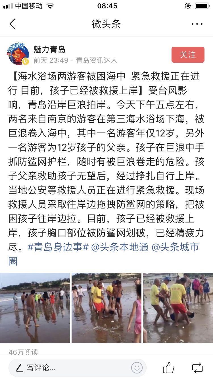 台风天游鸡毛泳,虎逼么?没有安全意识?