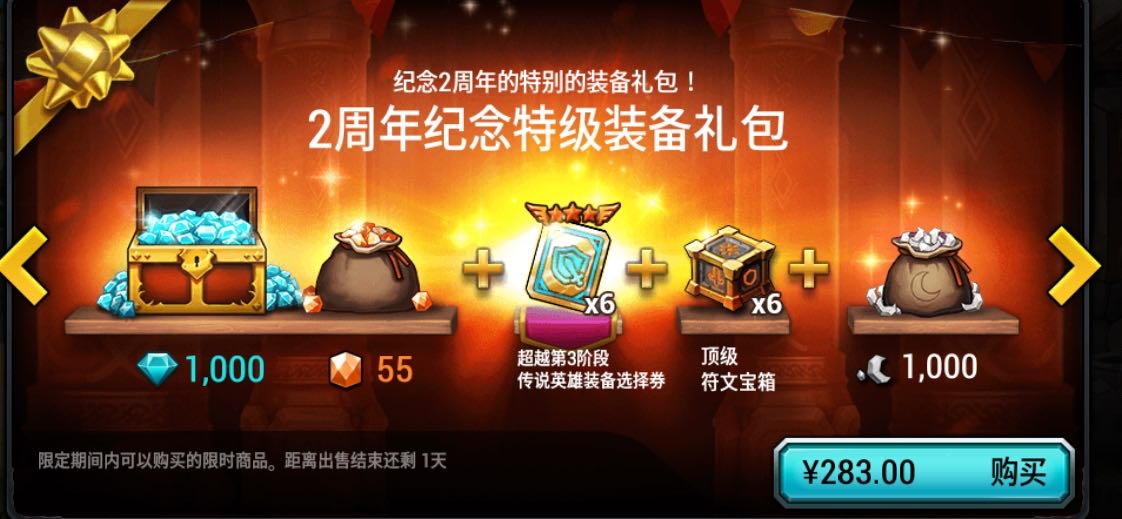 不过我打算一些礼包还是会看情况买比较便宜的,主要那些五星选择的 能直接选瓦尔基里,两百多的礼包好像就不太值得了