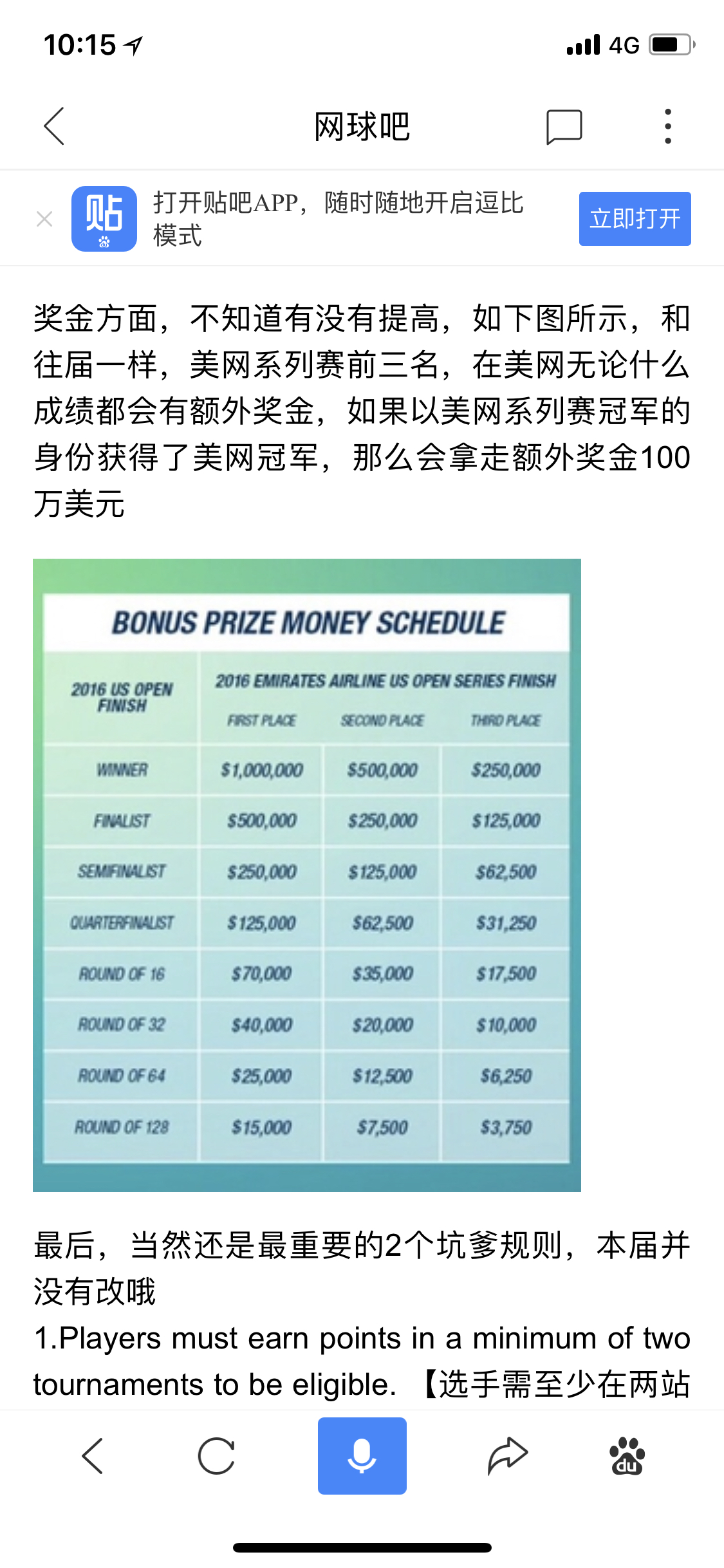 系列赛积分第一且美网夺冠额外奖励100刀,现在还有这个规则吗?小德现在系列赛积分应该第一了吧?
