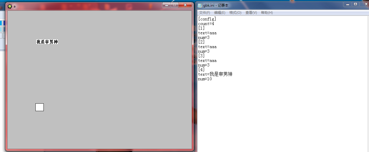 在对象的step事件添加下面两行代码调用绘制文字文本,参数为字符串。中间用竖线隔开。窗口句柄|文字在gbk.ini中的序号|x坐标|y坐标