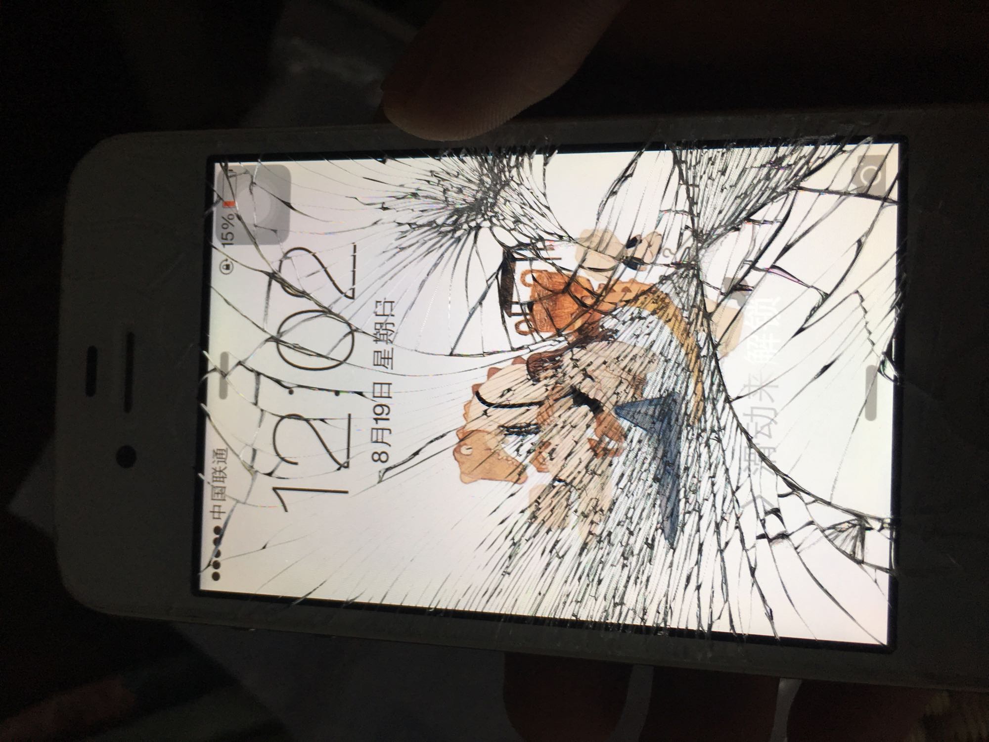 看机子边缘,彻底碎了但还能触屏。准备当个mp3用,或许以后考研还要用到