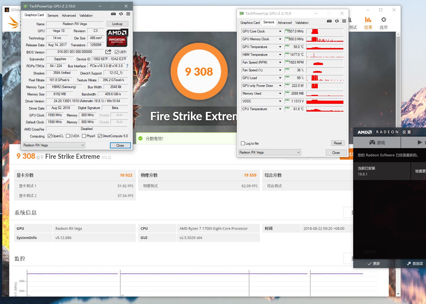 深红驱动版本为现在最新的18.8.1 只用均衡模式用来跑fse与ts (超频方面我会在刷完bios后做)