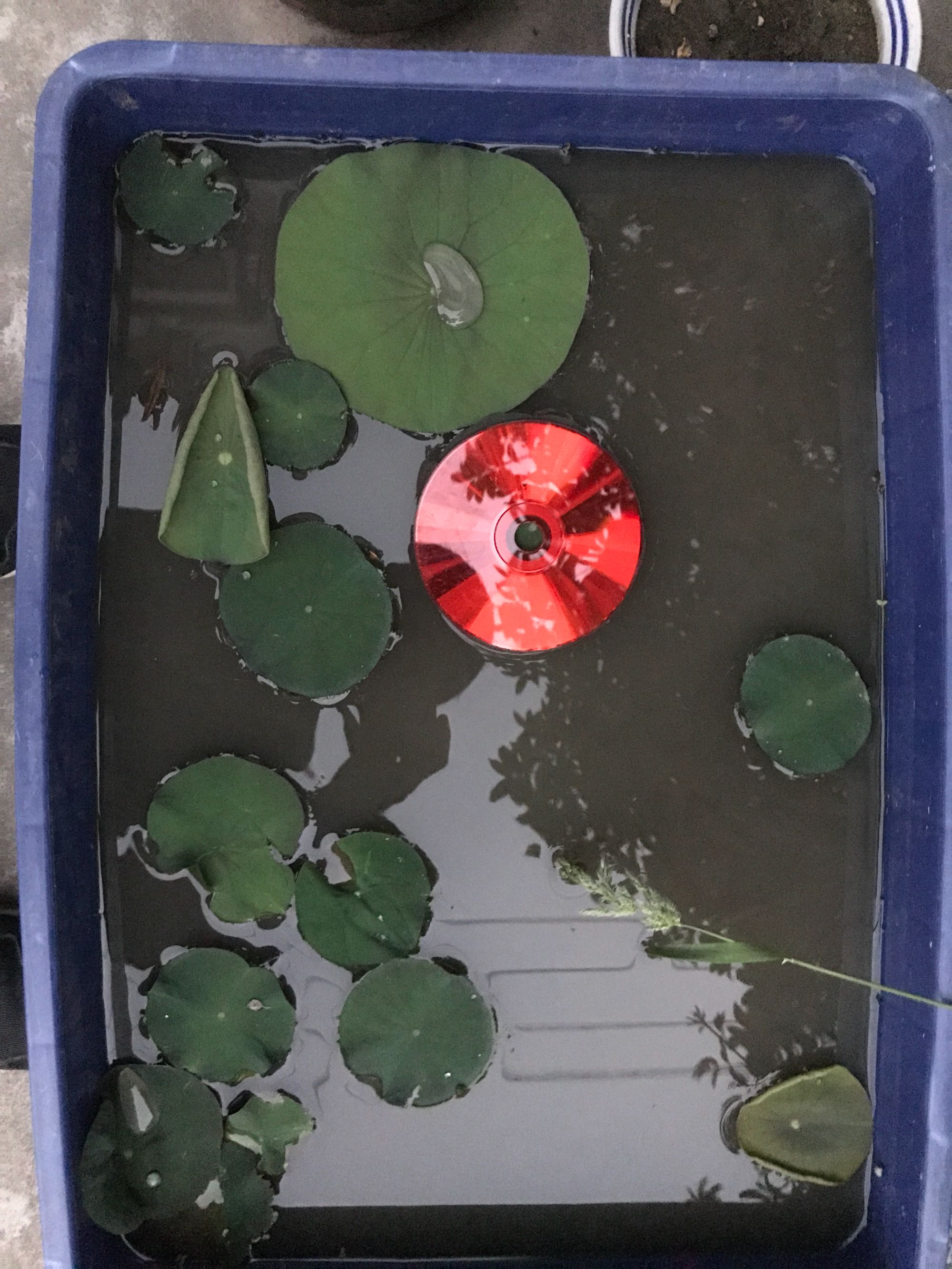 荷叶一天天长大,长得比光盘还要大……然后其中一小缸拿到幼儿园交了作业……最后一图左下角……别人发的种子都长得老快了……就我这莲子长得是真的慢……