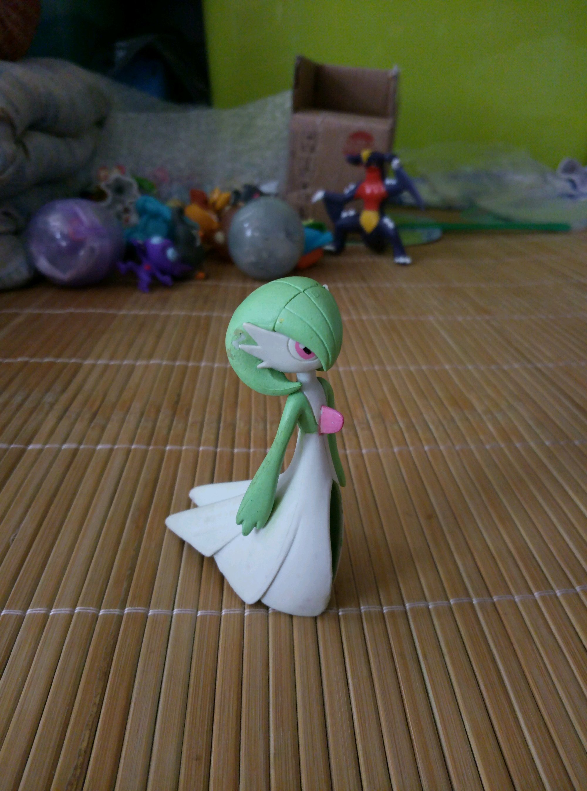 三个鬼 左边是tomy桌面吐舌头耿鬼 中间勾魂眼mc 右边鬼系扭蛋诅咒娃娃 耿鬼涂装有瑕疵 三只四十