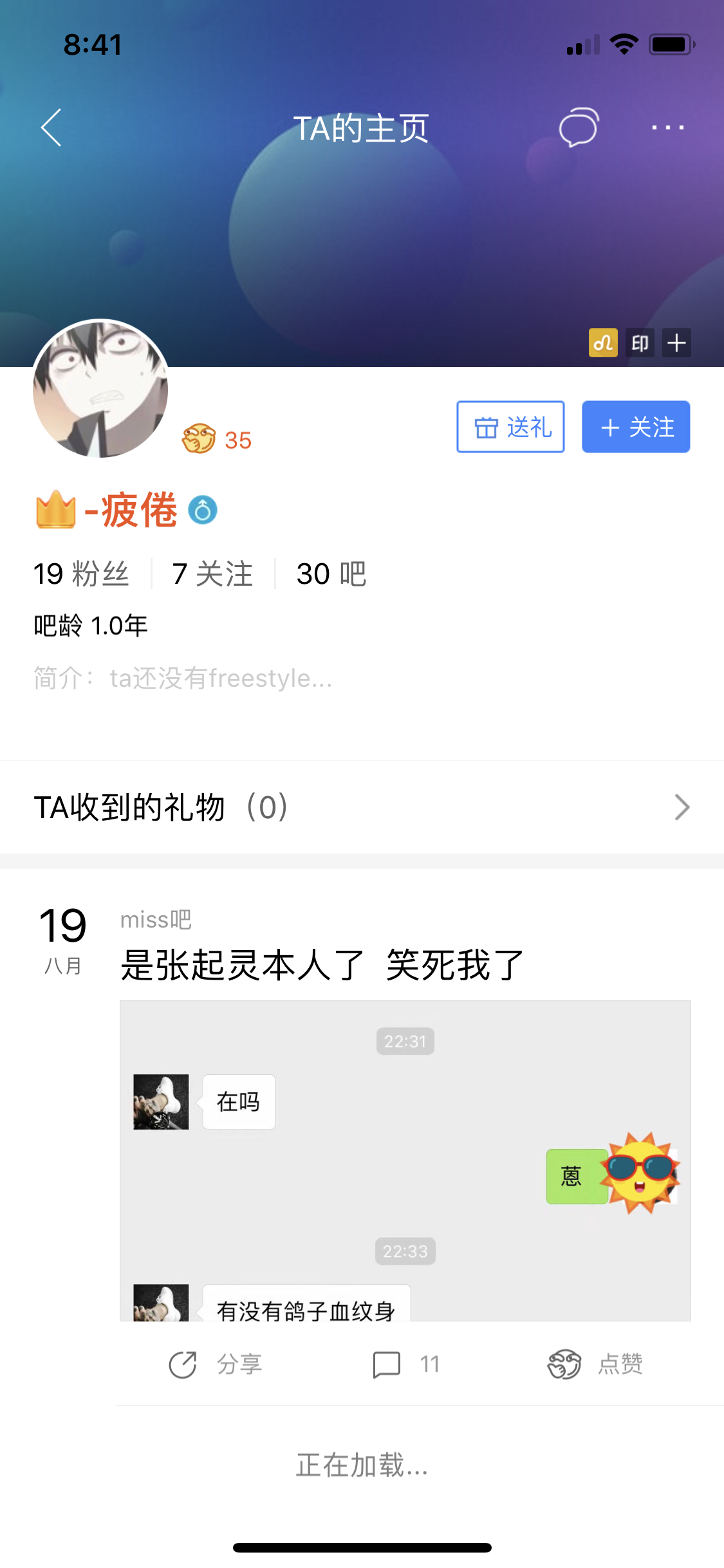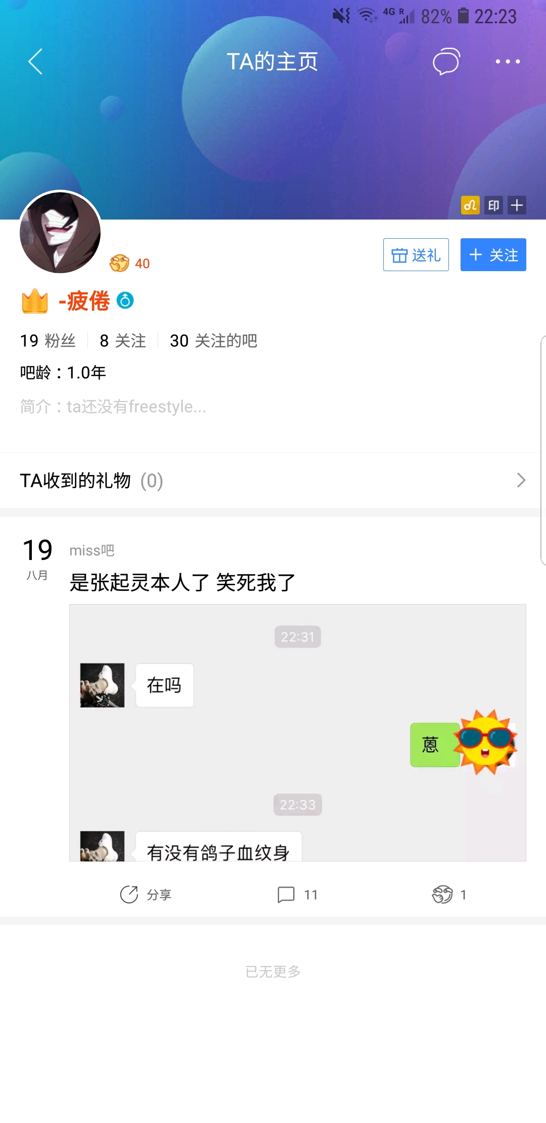 仔细看了看发现他id下面还有个签名是坐等楼下造谣操这不就是骗子才会这样吗