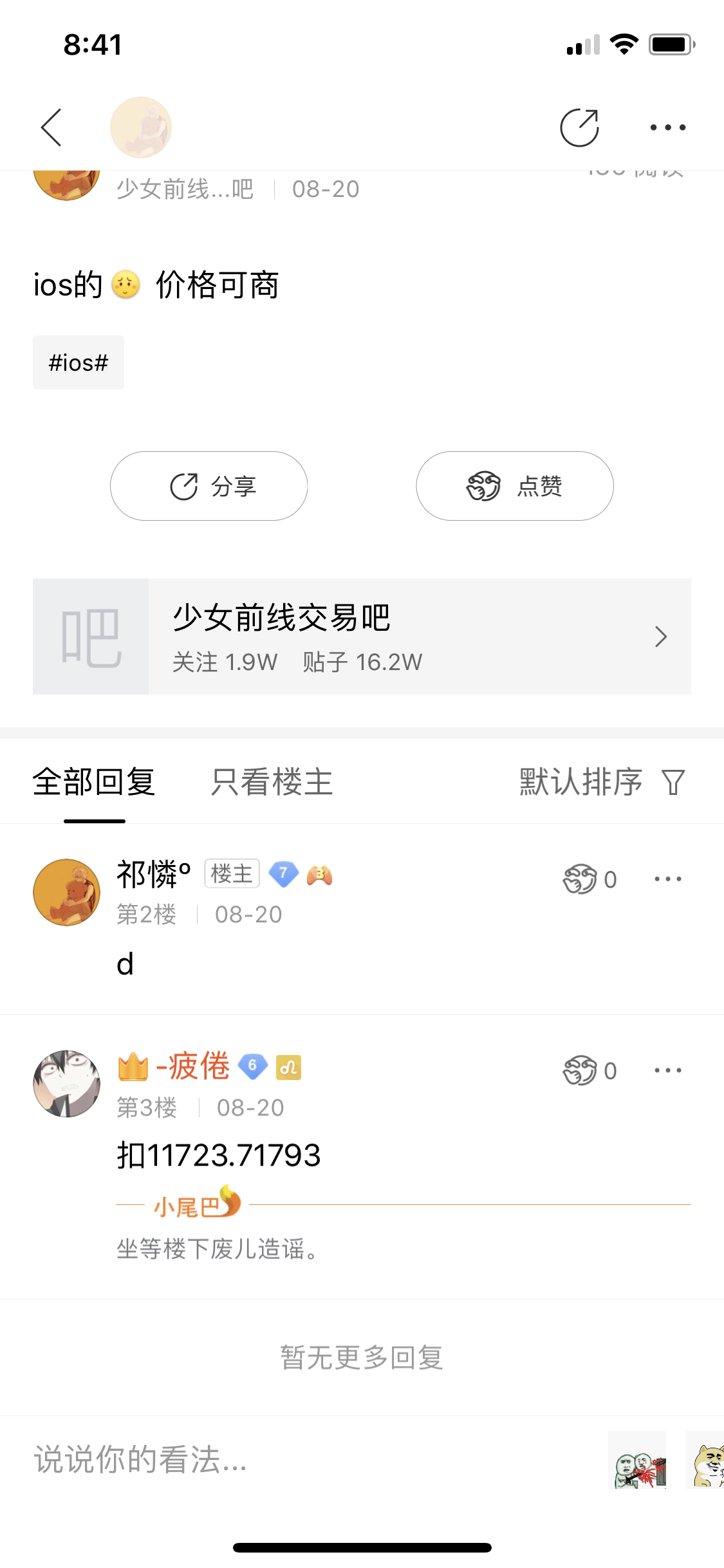 我当时发的帖子没有人说