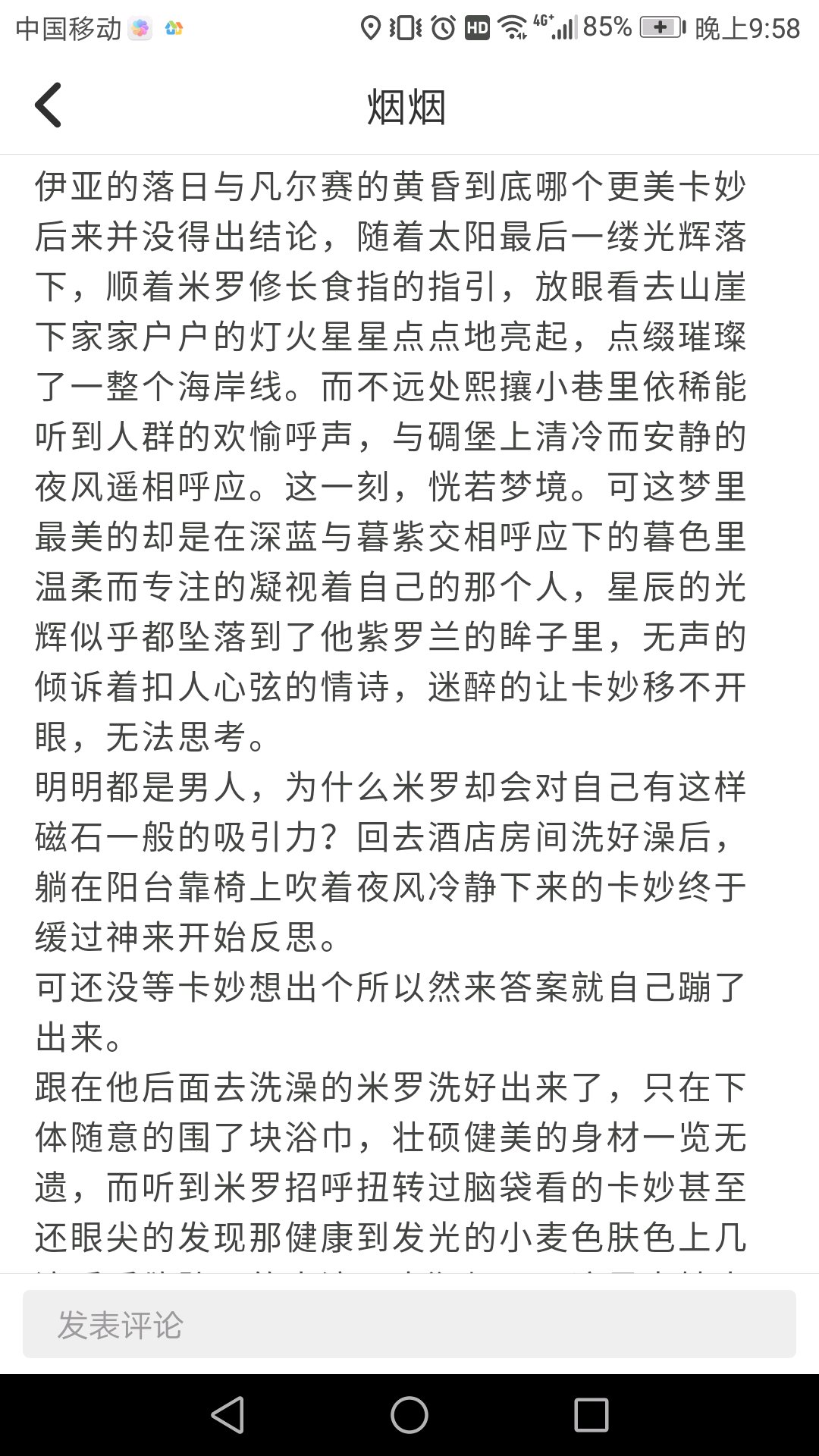 卡妙没有说出的话是他觉得爱情是两个人共同的事,但现在却明显是米罗为了迁就他做出了牺牲,毕竟程序员与博物馆管理员哪份职业更容易在国外获得就业机会是一目了然的,可是米罗依然愿意为了呵护他不受动荡变化之苦,而主动放弃在地中海阳光下自由舒适的生活去到异国他乡辛苦谋生。想到这里,卡妙内心暖的都要化了,他暗暗发誓哪怕米罗在巴黎一直找不到工作在家做家庭主夫也没关系,他愿意养他一辈子。