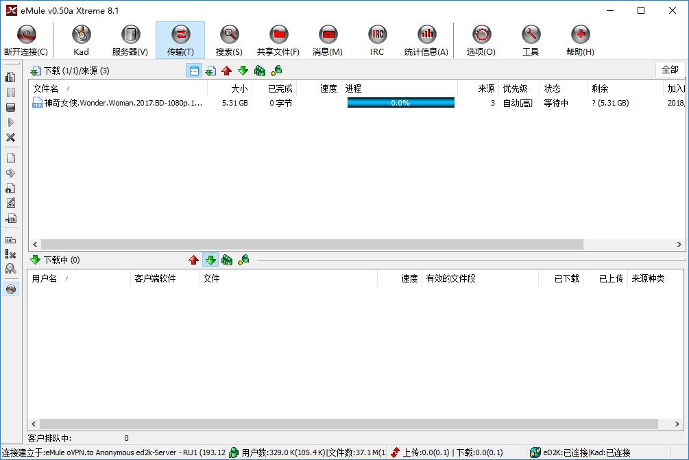 eD2K和Kad都连接上了,为什么下载电影没有速度啊?