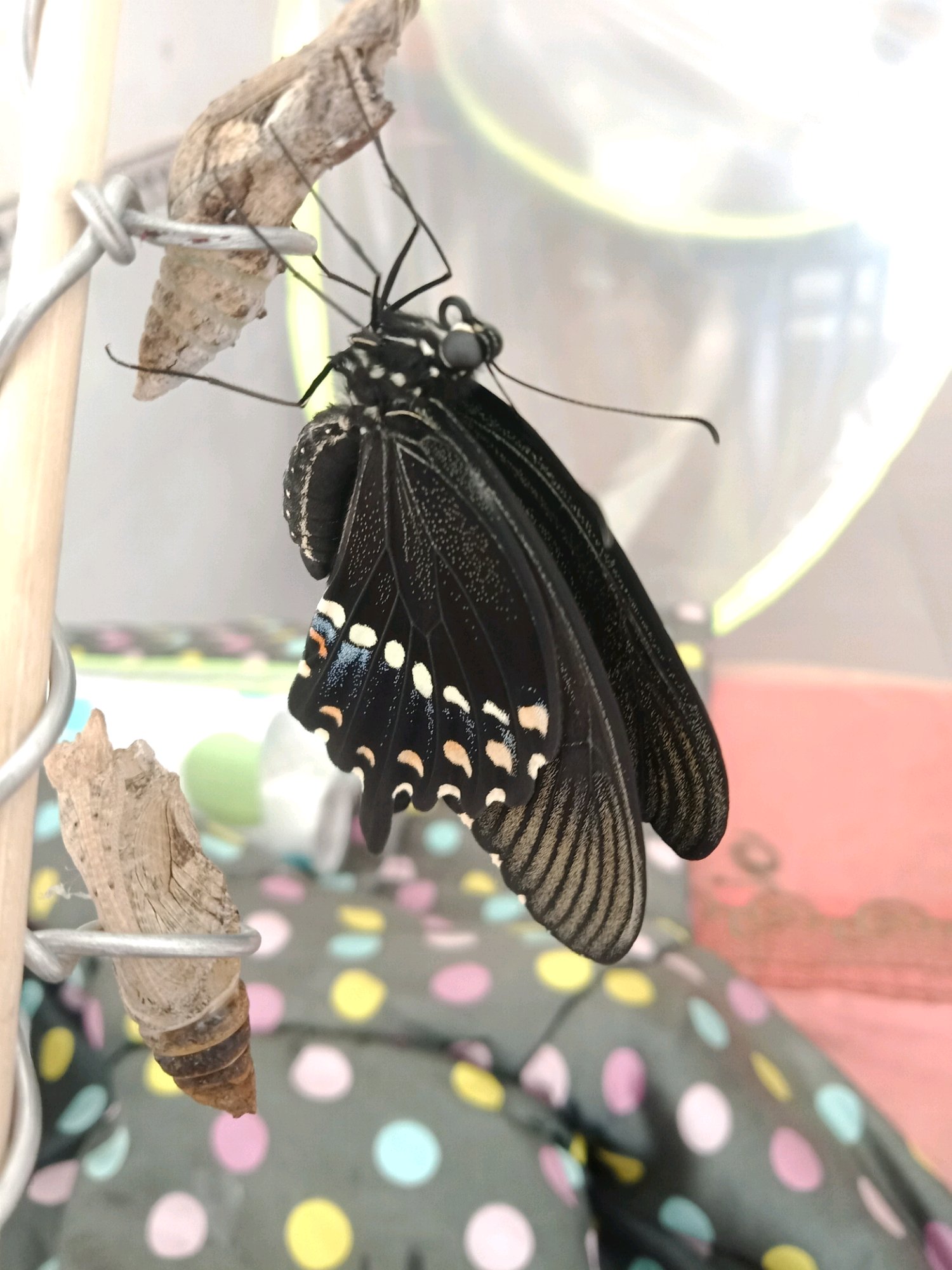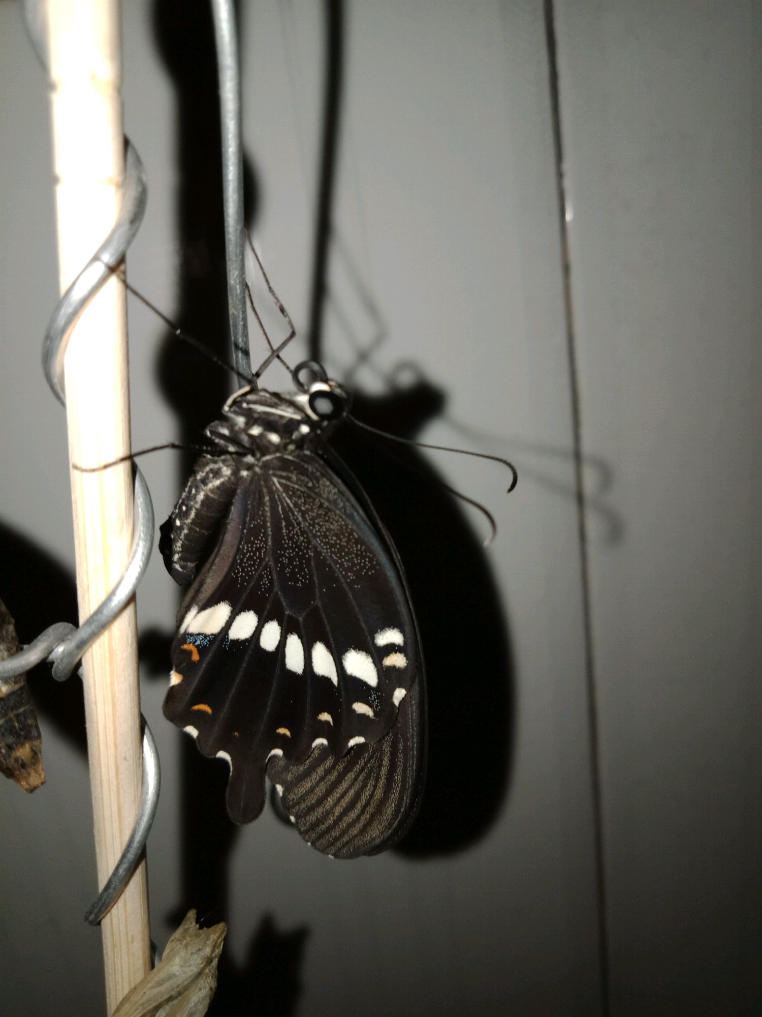 回家时已经羽化了一个,是在盒子里的,居然成功了!尾突自己弄断了。