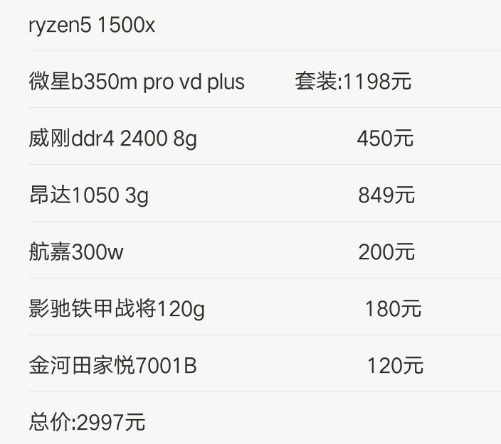 求电脑配置单,预算三千内,配独显,不含显示器,键鼠,平时主要