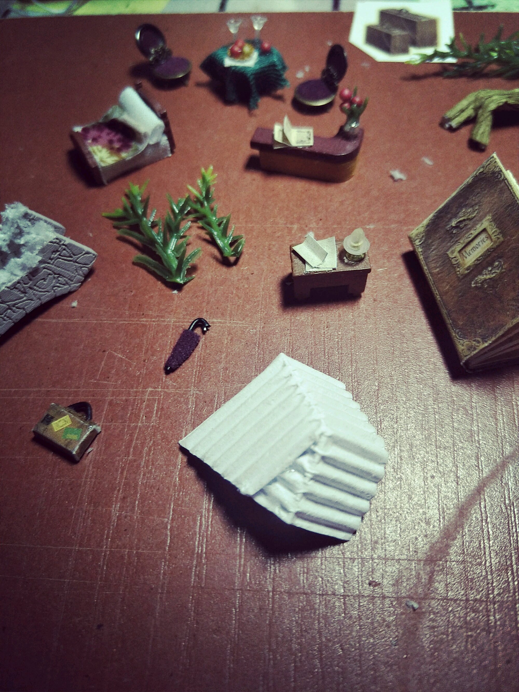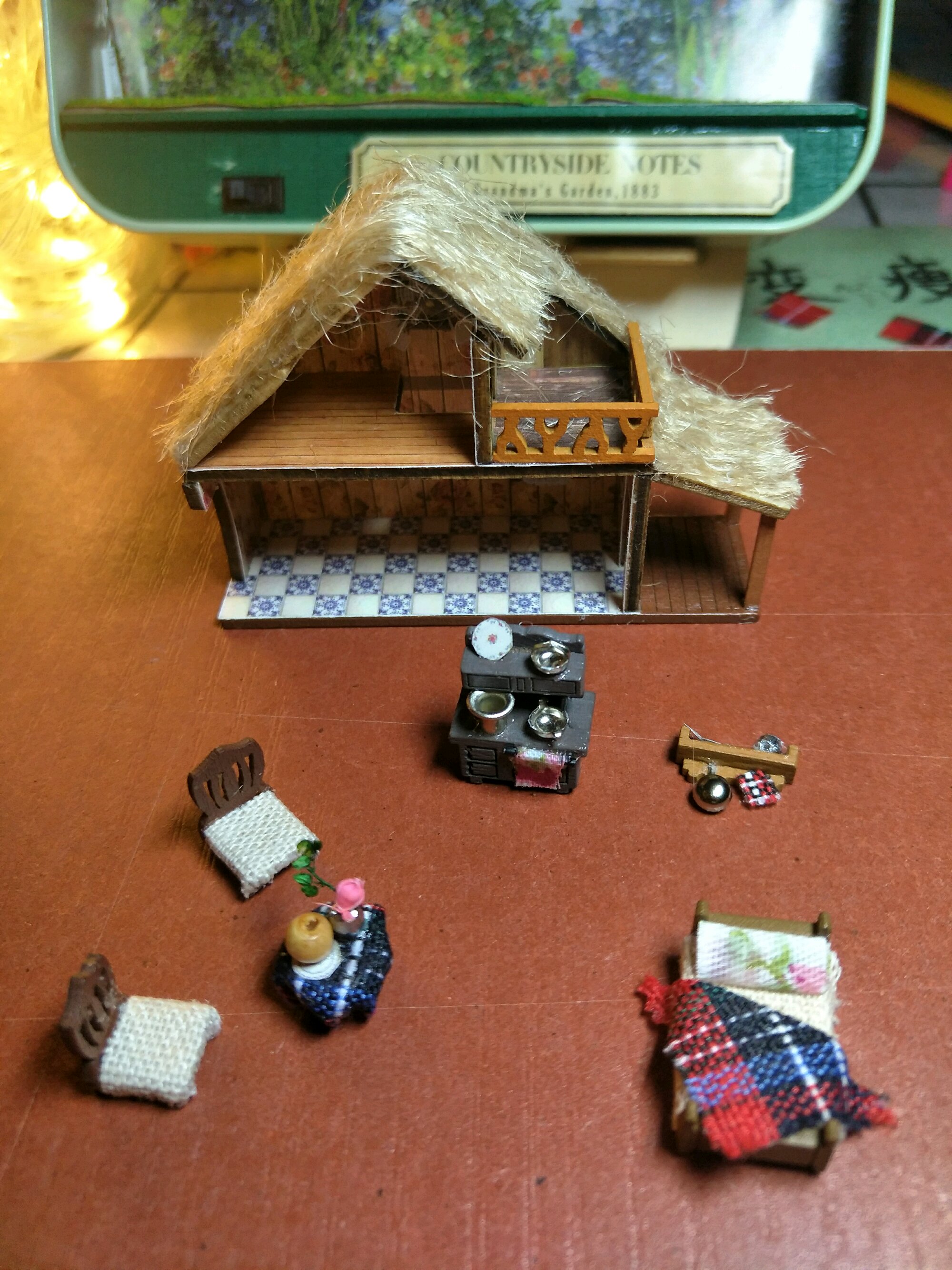我做的第一个DIY,盒子世界。二月底买的材料包,两天时间做完,盒子长12公分宽8公分高2.5,刚入门真的觉得超难,就一个空盒子,各种乱七八糟的东西,自己裁剪自己拼接,东西都很小很琐碎,但是做完之后超有成就感。