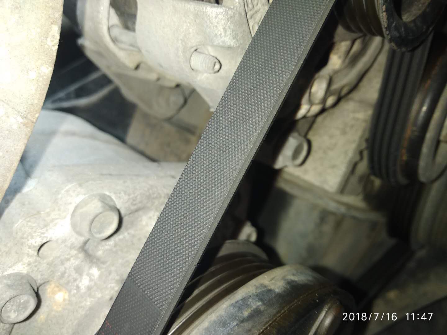 原先一开空调皮带就叽哩哇啦乱叫唤,以上图片是5月份在汽修厂刚换的皮带,能看到皮带已经出现了明显的裂纹。