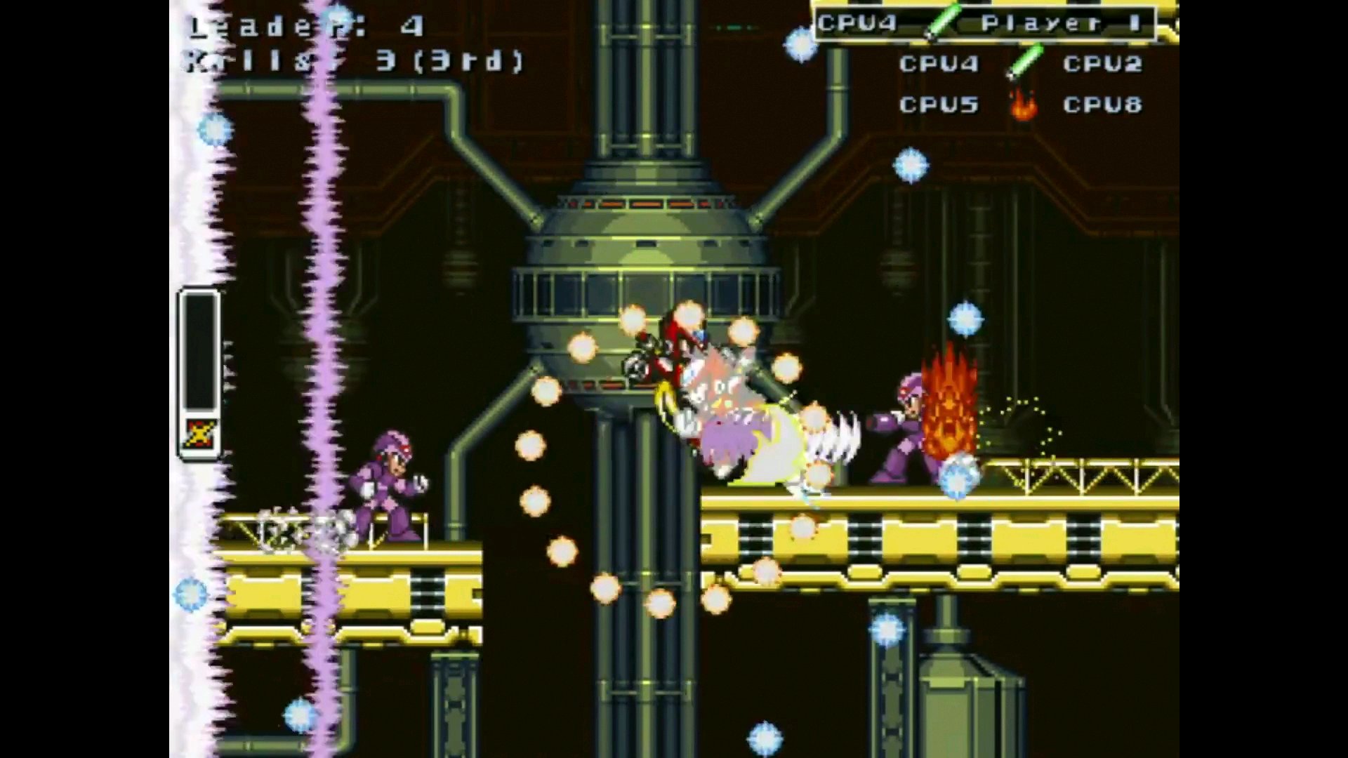 原名 Mega Man X Online : Deathmatch 作者 Gamemaker 19 这是个HTML5网页同人游戏,推荐用chrome游玩 虽然名字有 online ,但其实目前仅支持本地双人1V1...不过即使身边没有一起玩耍的小伙伴,你也可以和 CPU 谈笑风生,甚至可以观赏CPU 与 CPU 谈笑风生 有X、Zero两个人物,其中X能带三个特武,Zero只能使用光剑 目前有死亡竞赛、团队死亡竞赛、夺旗战三种模式,多张地图,仅支持单人CPU对战 作者表示在玩家基数够大时会加入联机模式