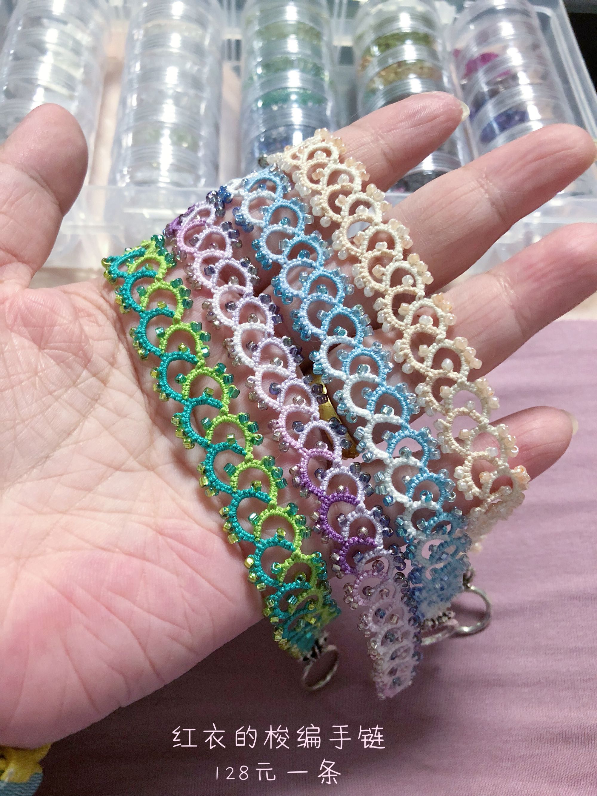 今天给我的梭编手链们拍了照,美不美