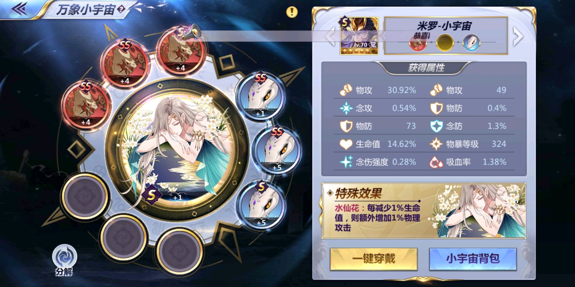 主输出米罗,生命弄少一些,传奇小宇宙用水仙花。