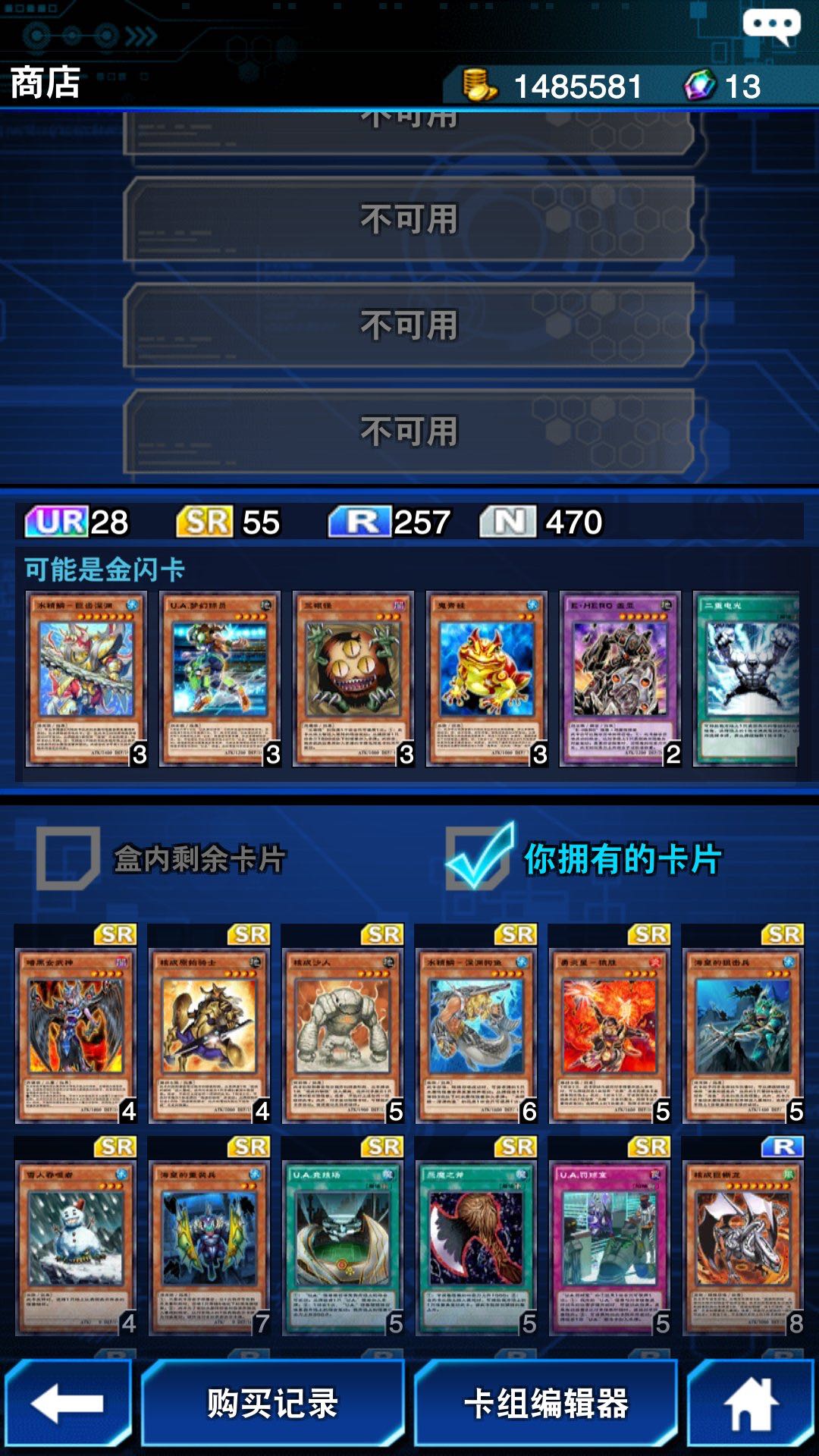 两球跟两迪吗,占了四个坑位了。然后三张R卡各两张,ur四星三张,本家魔法加陷进五六张了