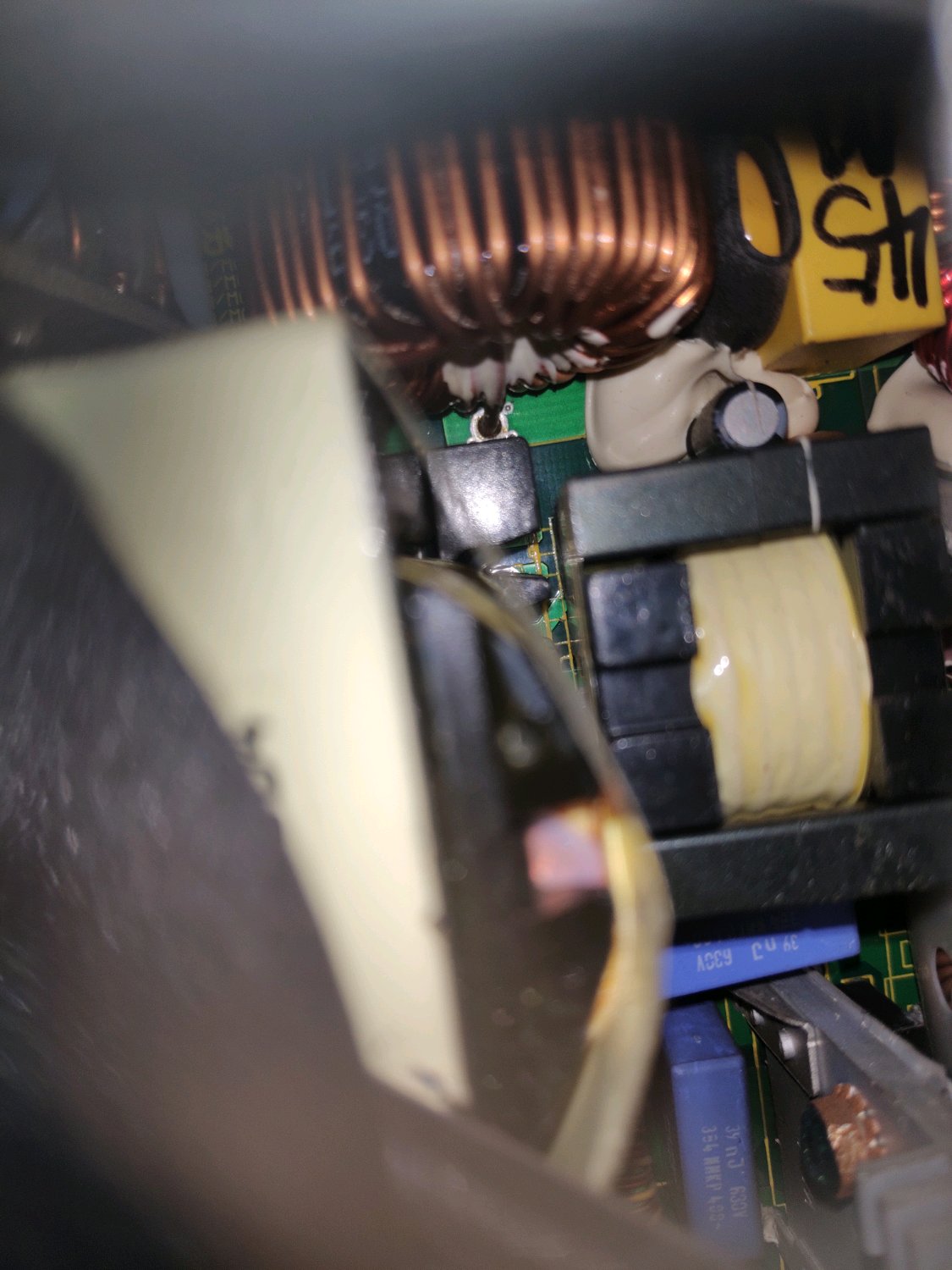 赶脚这不像电源爆了,倒像是电容固定的胶水