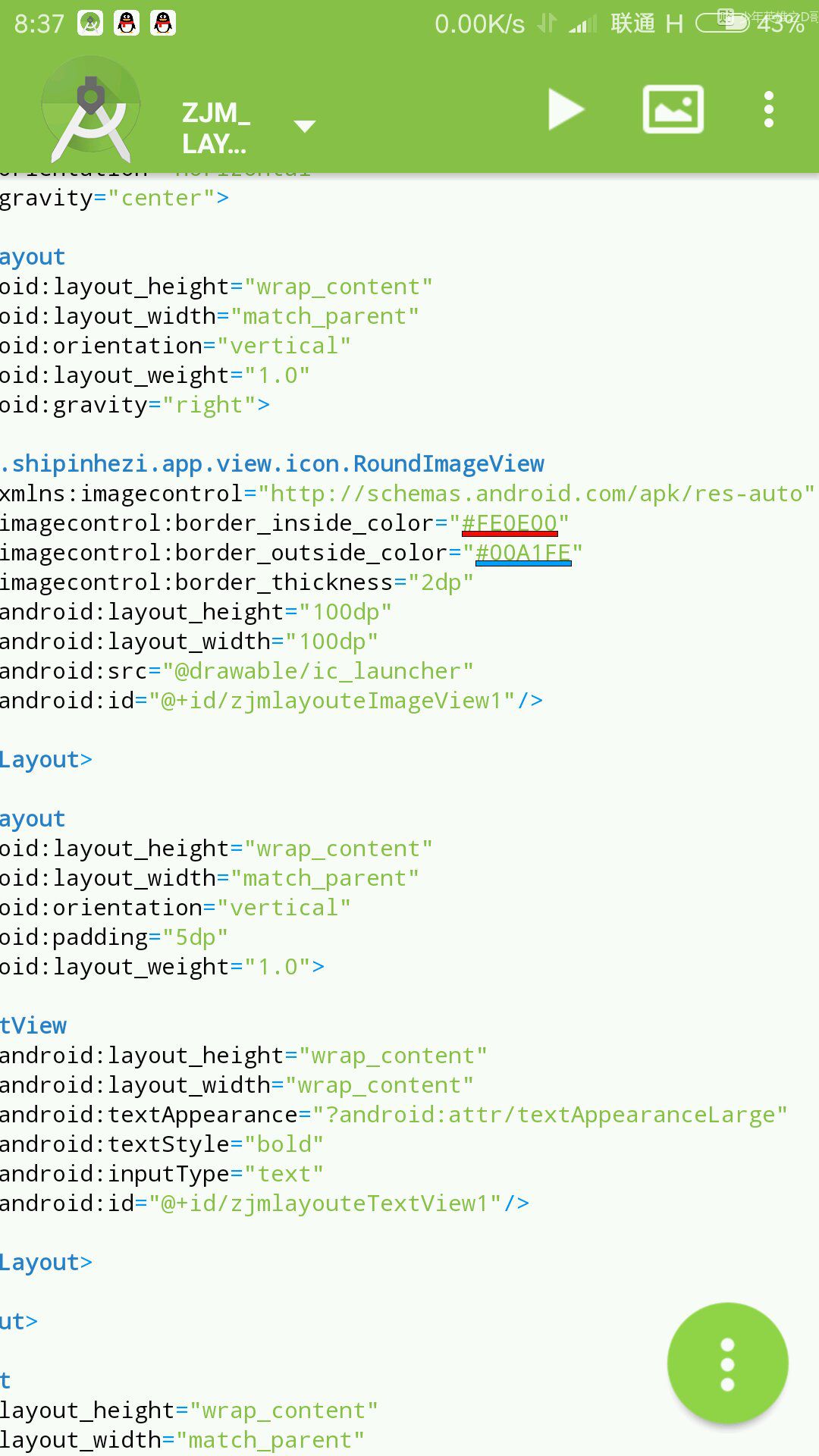 自定义圆角image布局里必须添加一个xml还有要注意image引用圆角类的路径要正确