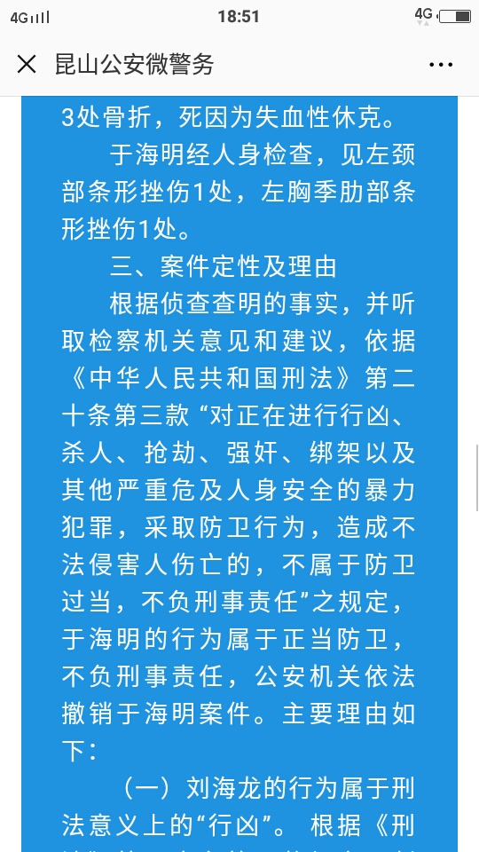 于海明为民除害 应予奖励