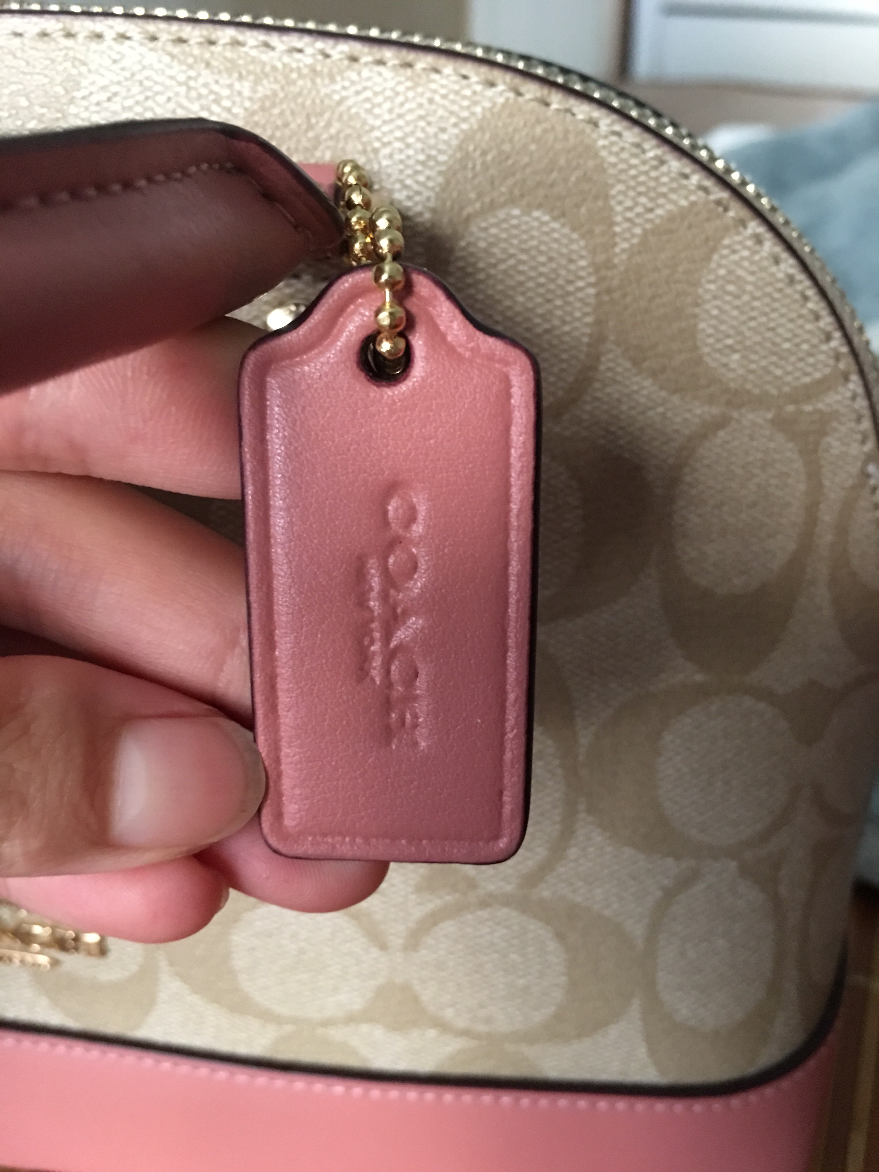粉色皮质吊牌LOGO,COACH new york 不清晰也是正常的吗?