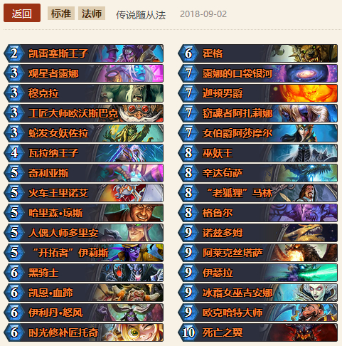 狂野的话全传说卡组有强度的就不少了,主要有一堆爆炸强度的6、8费和宇宙卡,这里就不推荐了。但在狂野玩这种全传说卡组基本上是被按在地上摩擦