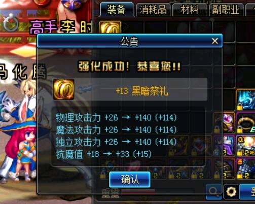 右槽增幅7,差个左槽12属强。耳环附魔差个125。全身红10,武器白14,耳环白12。上下地板娘,两个春节宝珠,一个15力。黄色全完美,差六个25力两个15力。