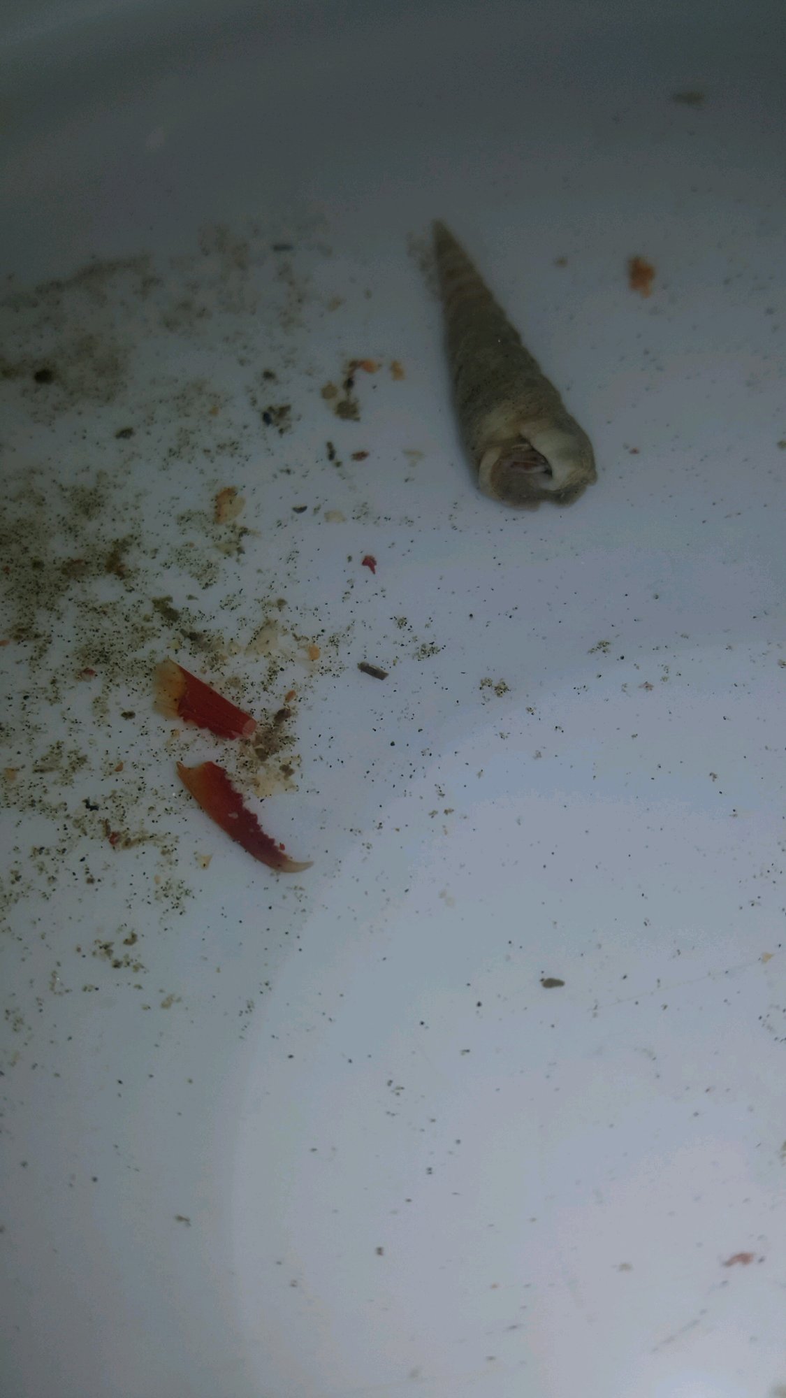 昨天差点空军了…捡了两个螺一只大螃蟹… 海边的小鱼真心难抓。发现这螺很会吃藻。海边带回来的藻一晚上全没了