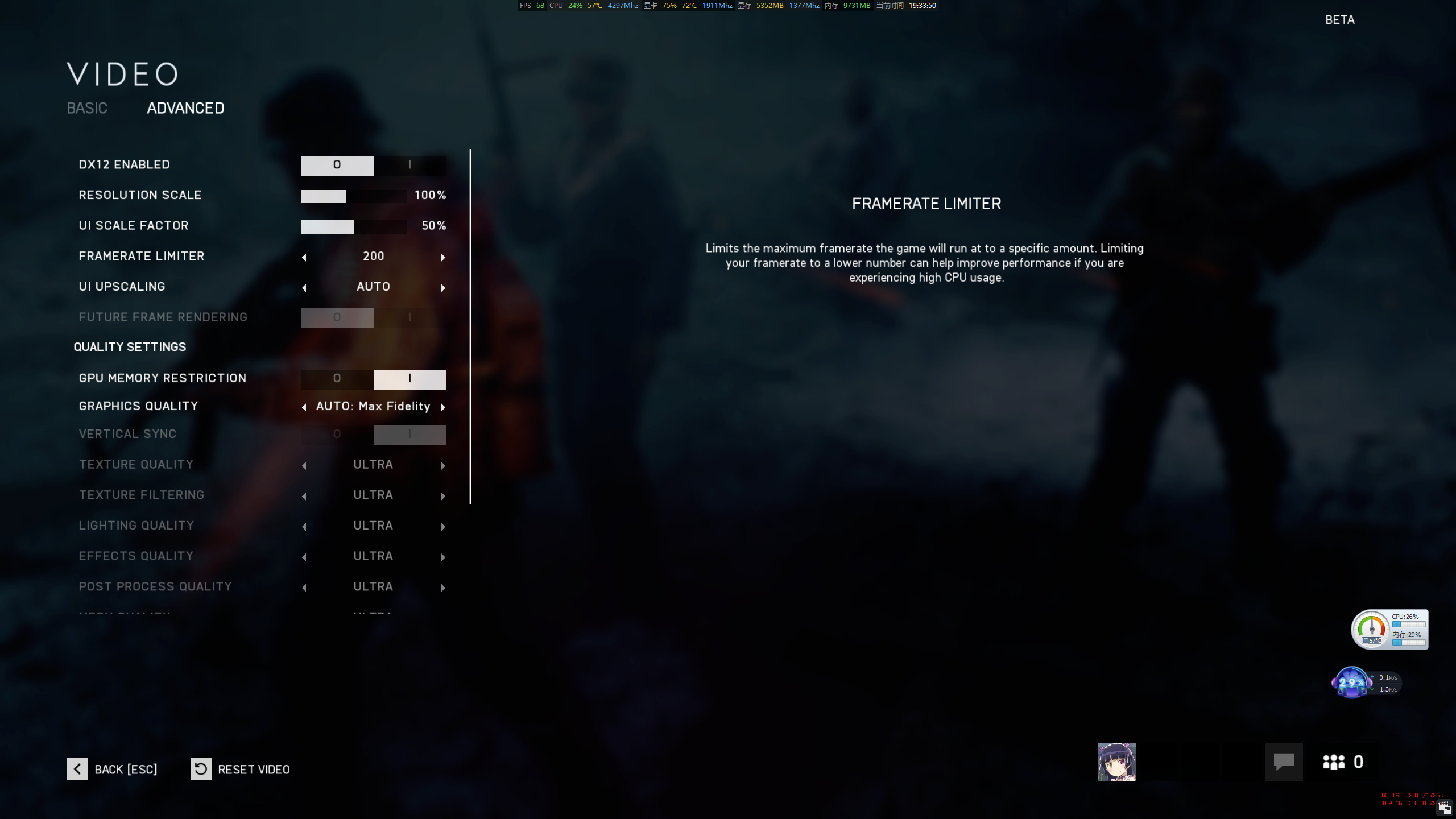 我把设置都改了一遍和战地1一样 但是爹1界面130多帧 爹5只有70-80 感觉很慌