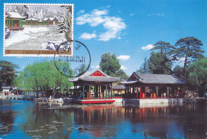 万寿山和另一枚玉带桥的邮票脱落,幸而发现玉带桥的邮票原来粘在万寿山片背后,算是勉强抢救了一张……