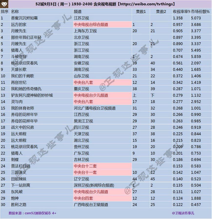 9月3日收视率。