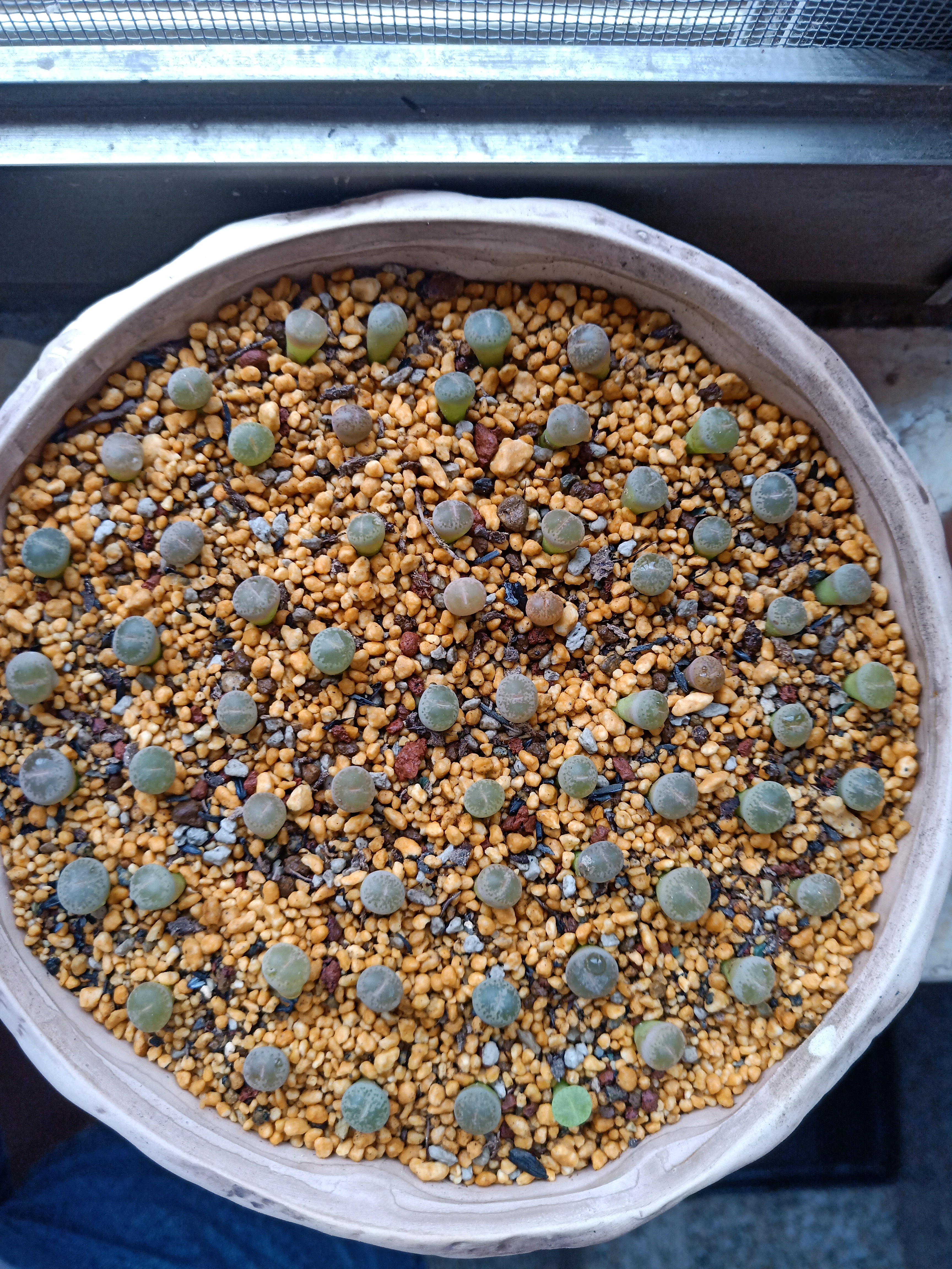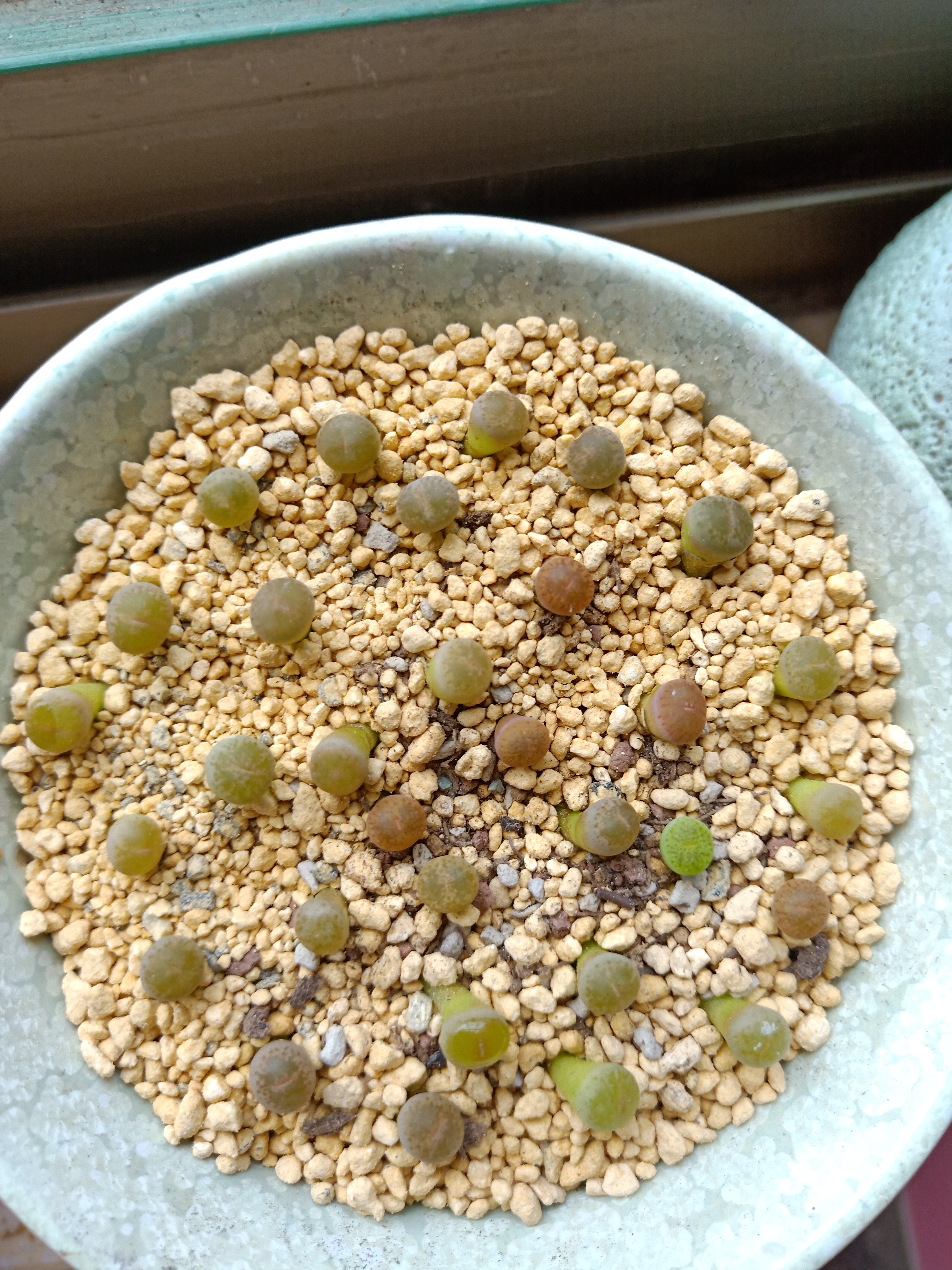 我第一颗生石花买的是第2张图的红窗和日轮,一年了